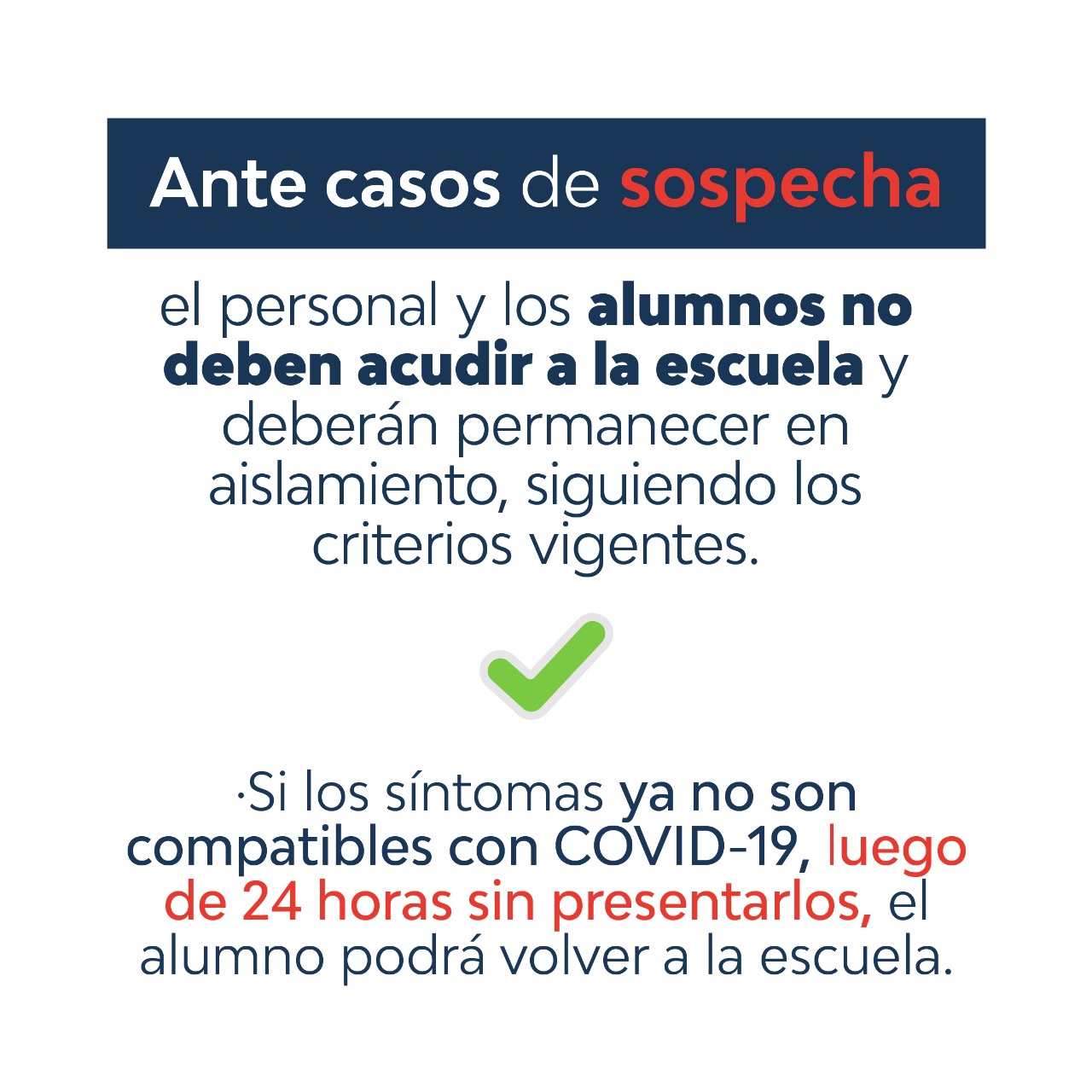 - Si los síntomas no son compatibles con COVID-19, luego de 24 horas sin presentarlos, el estudiante puede volver a la escuela.