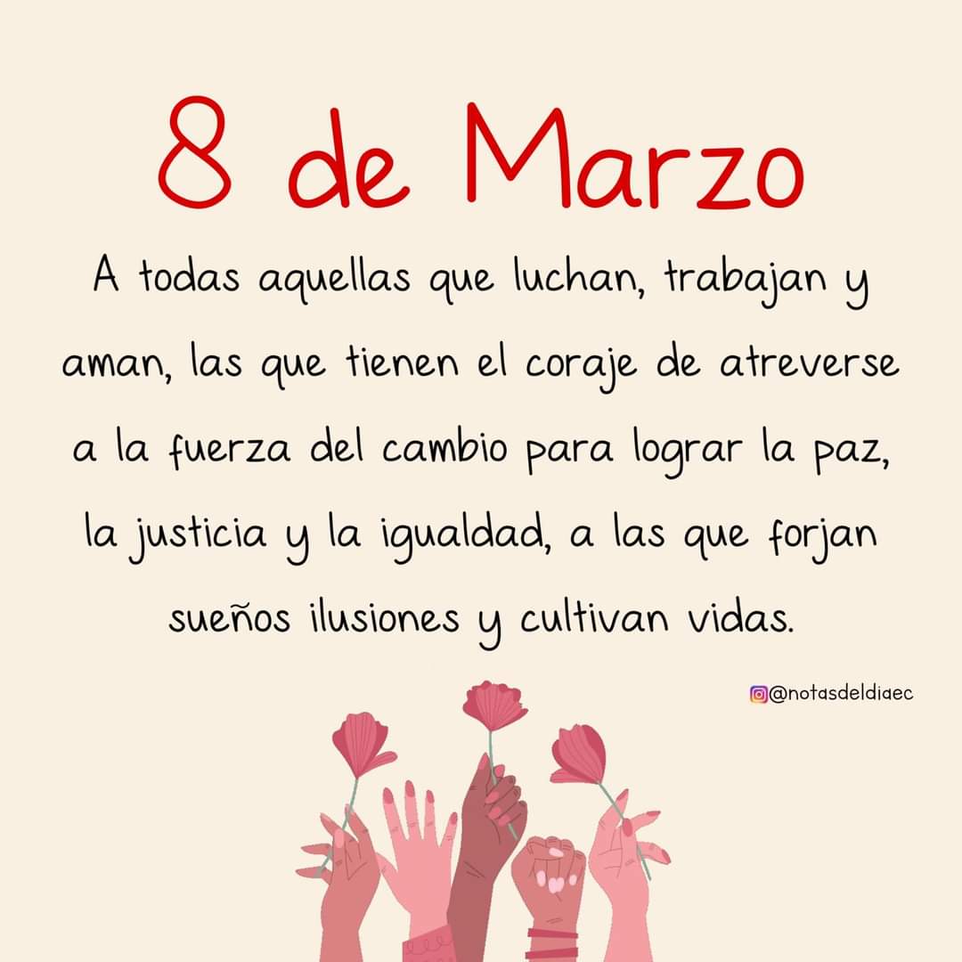 El Día Internacional de la Mujer, también denominado Día Internacional de la Mujer Trabajadora, se conmemora cada 8 de marzo (8M) en referencia a la lucha de mujeres y disidencias, por el reconocimiento de su participación en la sociedad y su desarrollo íntegro como persona, en pie de igualdad con los hombres.