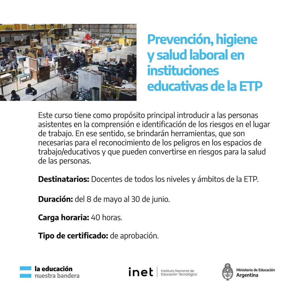 – “Prevención, higiene y salud laboral en instituciones educativas de la ETP”