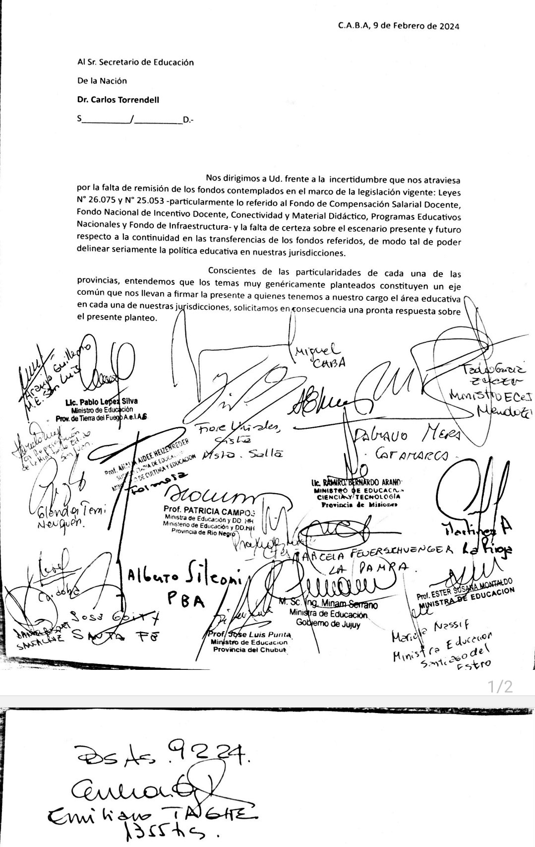 El viernes pasado, los ministros y ministras de Educación de todas las provincias de Argentina se reunieron para abordar la situación preocupante derivada de la suspensión de las transferencias de fondos del Gobierno Nacional destinados a cubrir las necesidades del área educativa. En esta reunión, elevaron una nota al secretario de la cartera a nivel nacional, Carlos Torrondell, expresando su inquietud e incertidumbre.