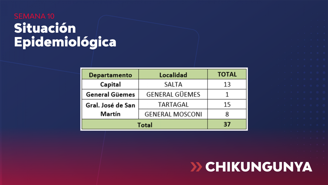 Desde el inicio de 2024, se registraron 37 casos de chikungunya en Salta. Estos fueron identificados en cuatro municipios: