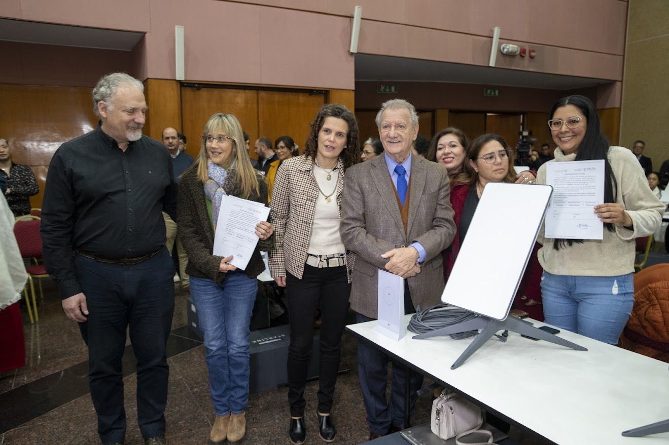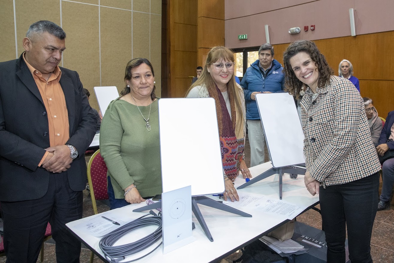 En el Centro Cívico de Casa de Gobierno el vicegobernador de la provincia, Antonio Marocco, encabezó el acto de entrega de 28 kits de antenas de conexión para escuelas rurales y sedes de secundarios mediados por tecnologías que funcionan en espacios inhóspitos y dispersos de la geografía local. Estuvo acompañado por la ministra de Educación, Cultura, Ciencia y Tecnología, Cristina Fiore y la representante de Unicef Argentina, Ornella Lotito.