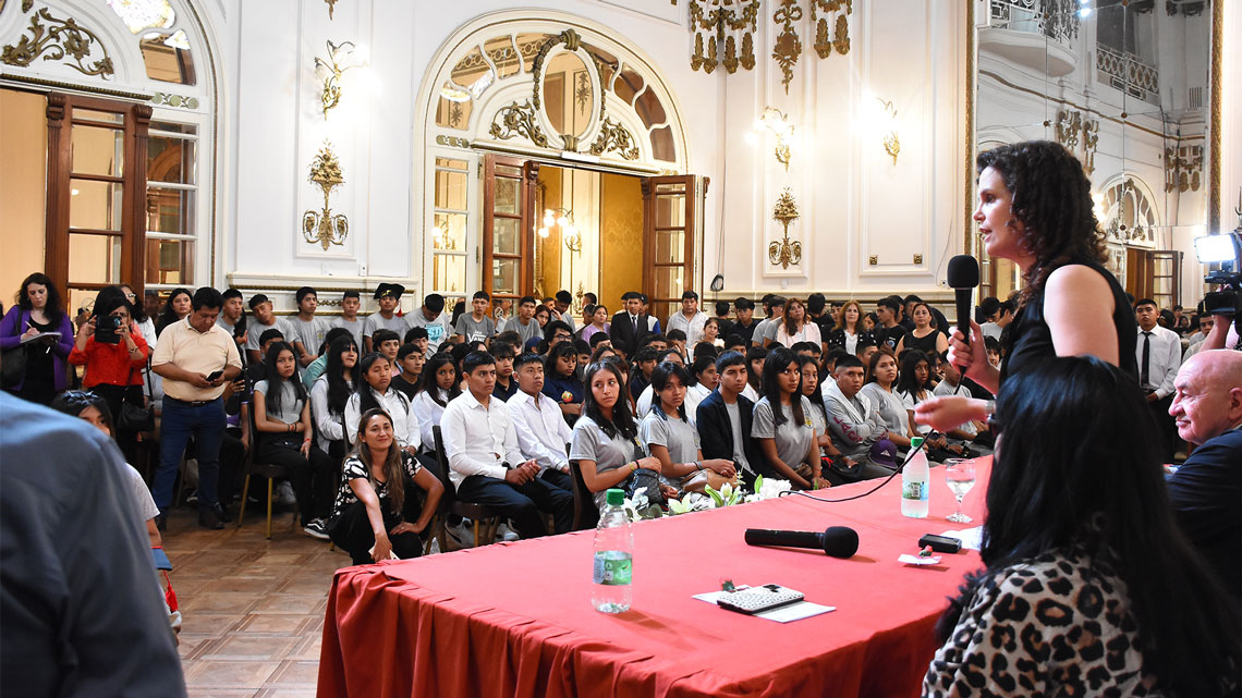 En el Centro Cultural América, la ministra de Educación, Cultura, Ciencia y Tecnología, Cristina Fiore Viñuales, junto a la secretaria de Gestión Educativa de la Provincia, Estrella Villarreal, encabezó el acto de egreso de estudiantes que concluyeron sus estudios bajo la modalidad de secundaria profesional.