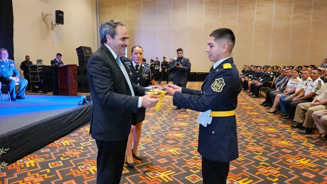 En ese marco, el director General de la Escuela de Cadetes, Waldo Mercado, destacó el logro alcanzado por los oficiales subayudantes en pos de servir a la patria y a la sociedad, enalteciendo los valores y principios rectores de la Institución en la carrera policial. También resaltó el trabajo realizado por el cuerpo docente, y el acompañamiento y la confianza depositada por los familiares.