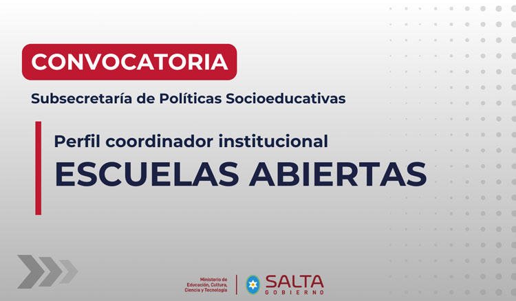 El Ministerio de Educación, Cultura, Ciencia y Tecnología de Salta, a través de la Subsecretaría de Políticas Socioeducativas, abre una convocatoria para aquellos interesados en formar parte del equipo técnico del Plan Provincial Escuelas Abiertas, mediante un convenio de colaboración.