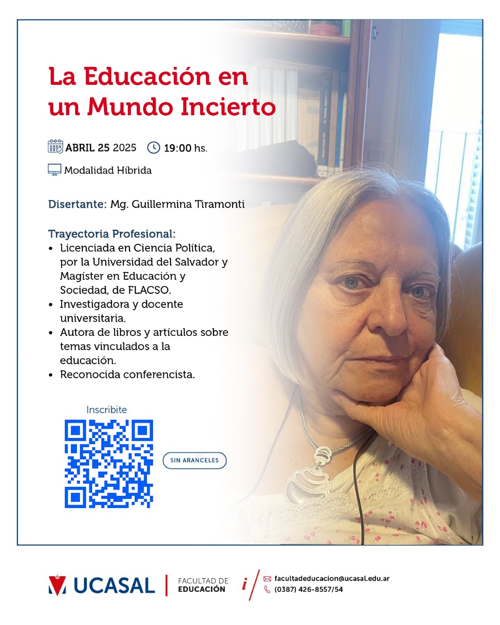 En esta oportunidad la Mg. Guillermina Tiramonti, nos invita a dialogar sobre «La educación en un mundo incierto«.