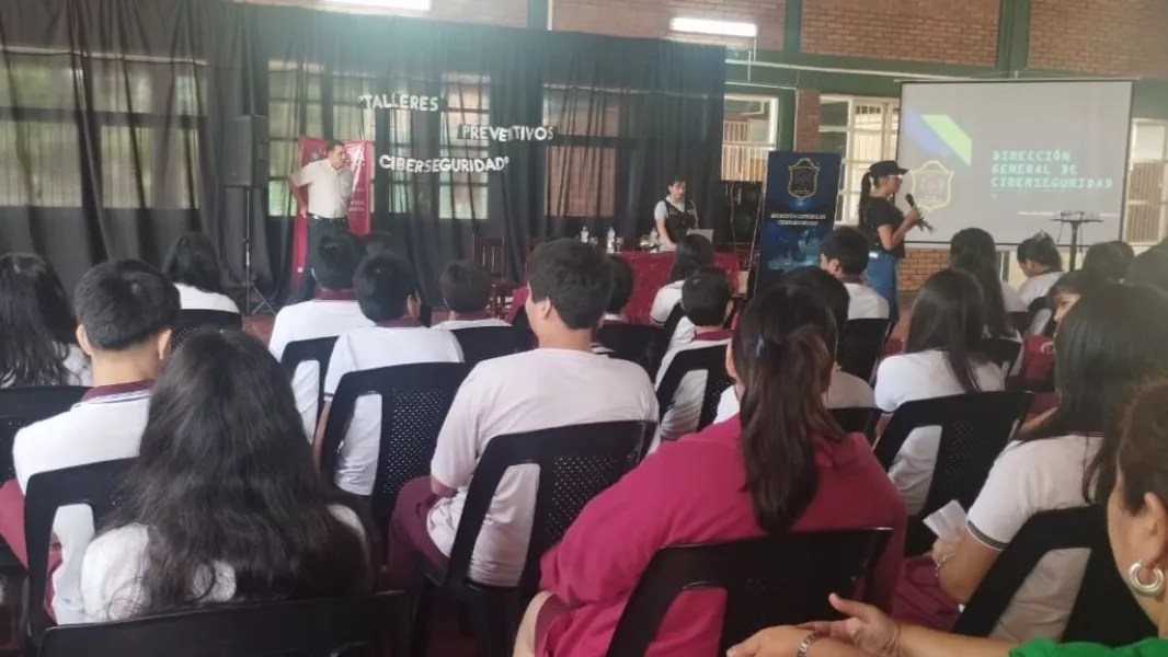 Profesionales de la Secretaría de Seguridad brindaron talleres en colegios del norte provincial sobre los riesgos del ciberespacio y las medidas adecuadas de control para reducir los riesgos de ser víctimas de delitos informáticos.