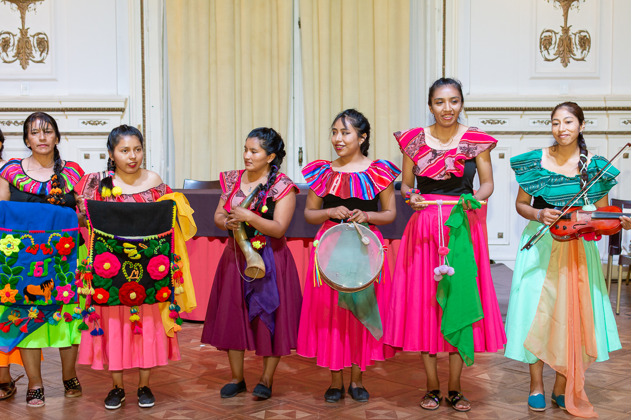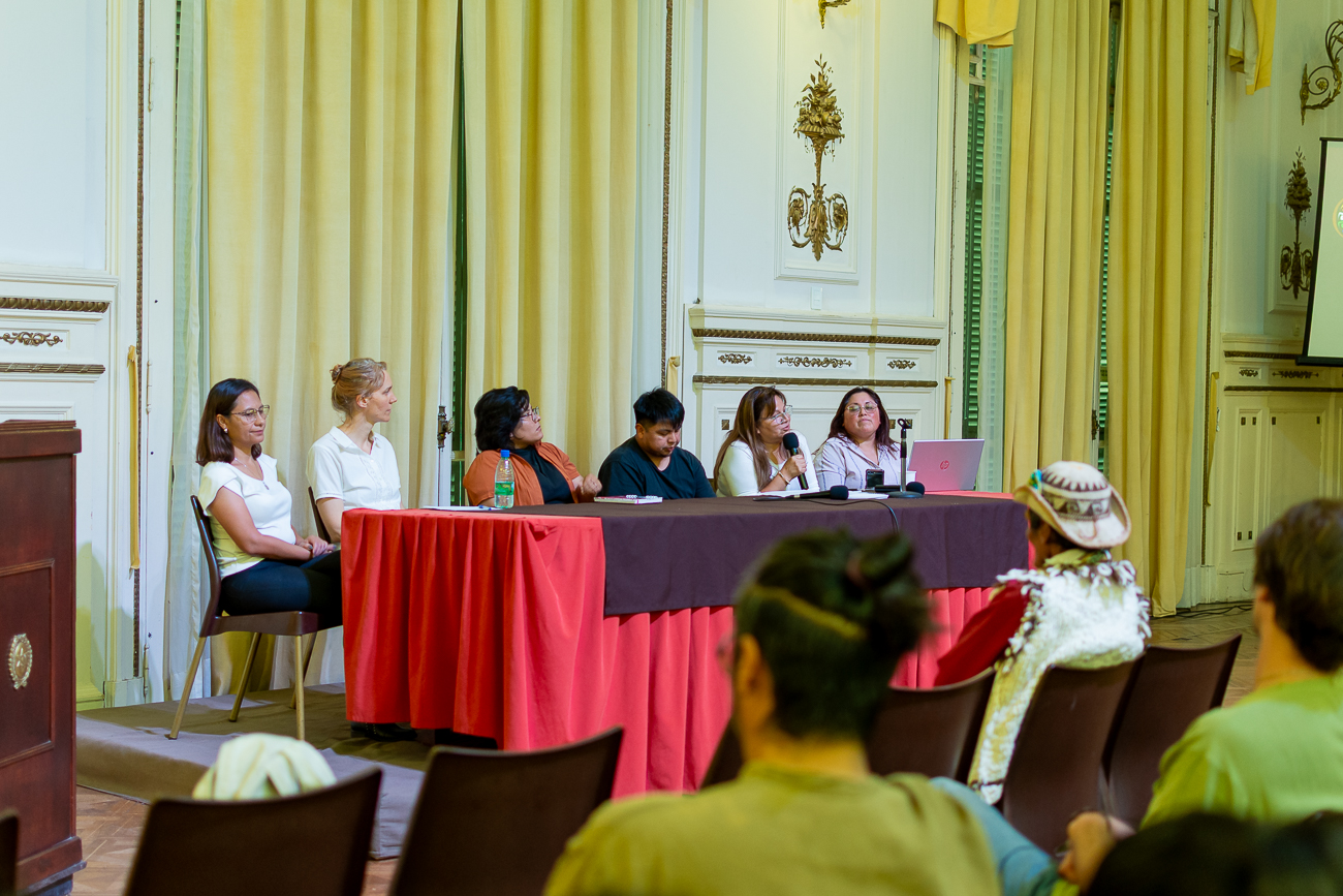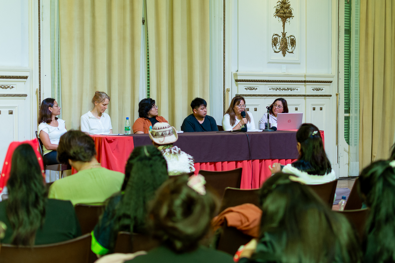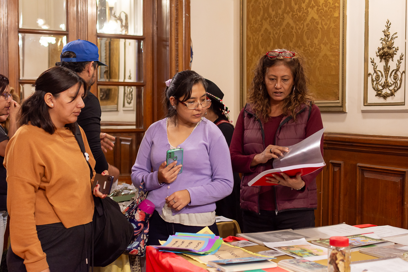 Durante la primera jornada se llevaron a cabo actividades en el Centro Cultural América, Mitre N° 23, entre ellas, las Muestras socioeducativas interculturales “Diálogo, saberes, cultura, arte, salud, comunidad y territorio» y el Círculo de saberes interculturales sobre “Lenguas indígenas y educación” y el Círculo de saberes interculturales sobre “Salud intercultural«, en el Salón Blanco.