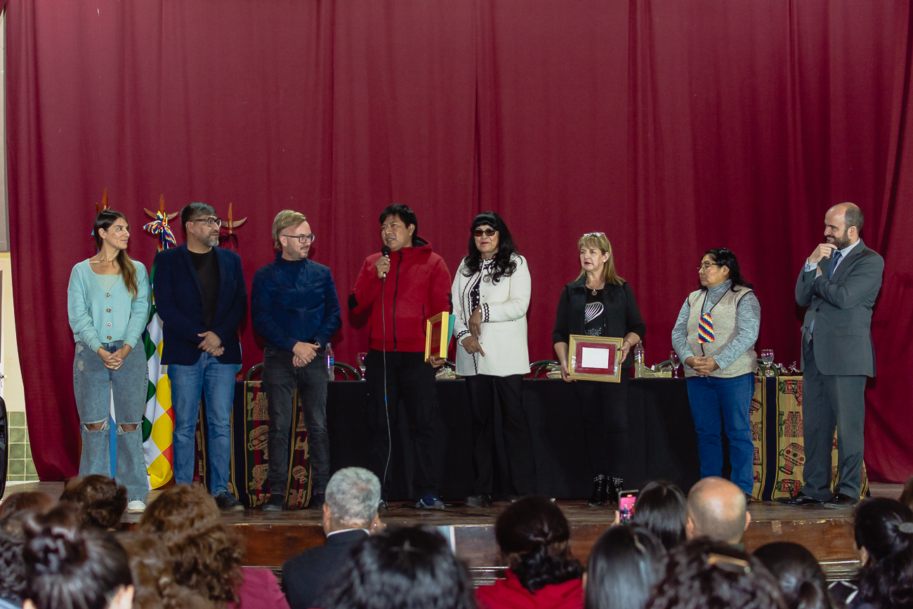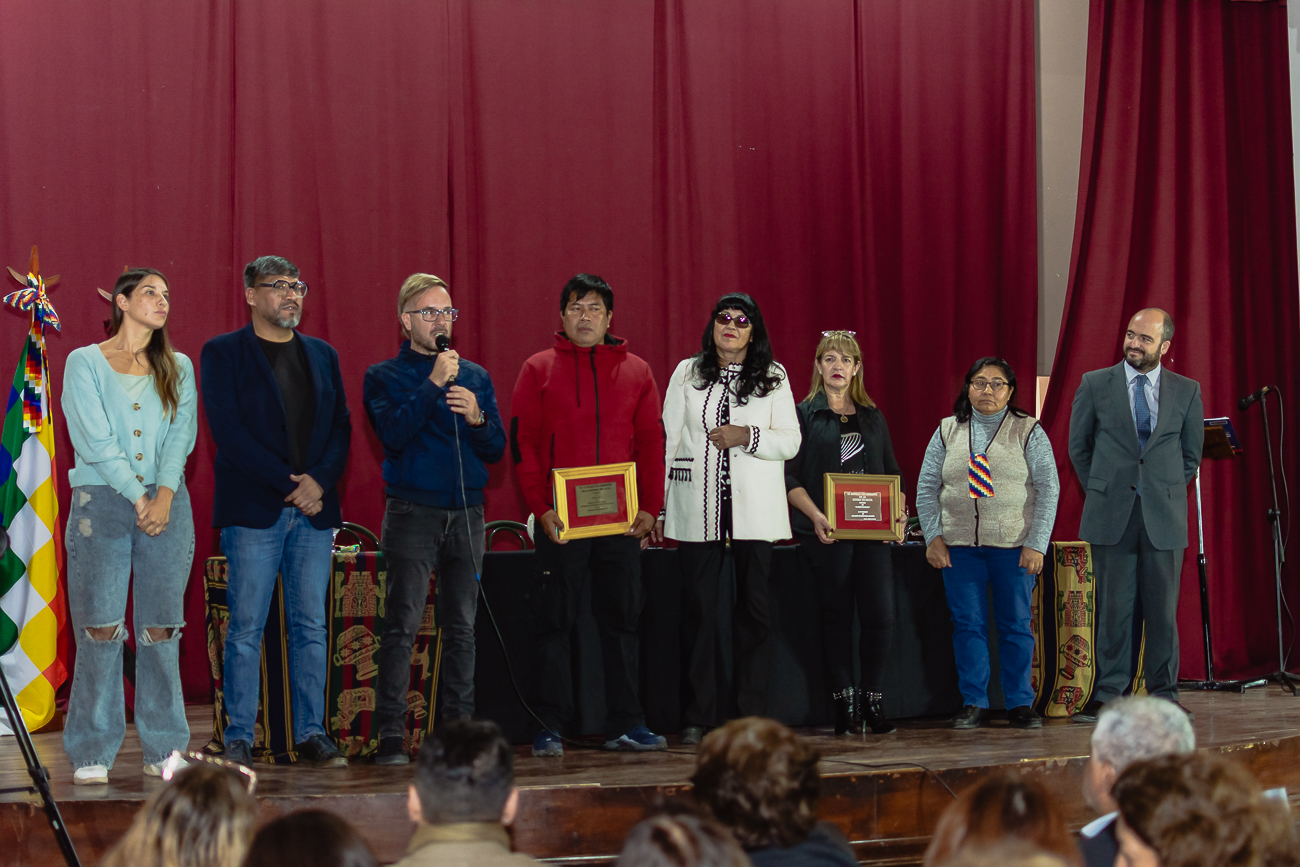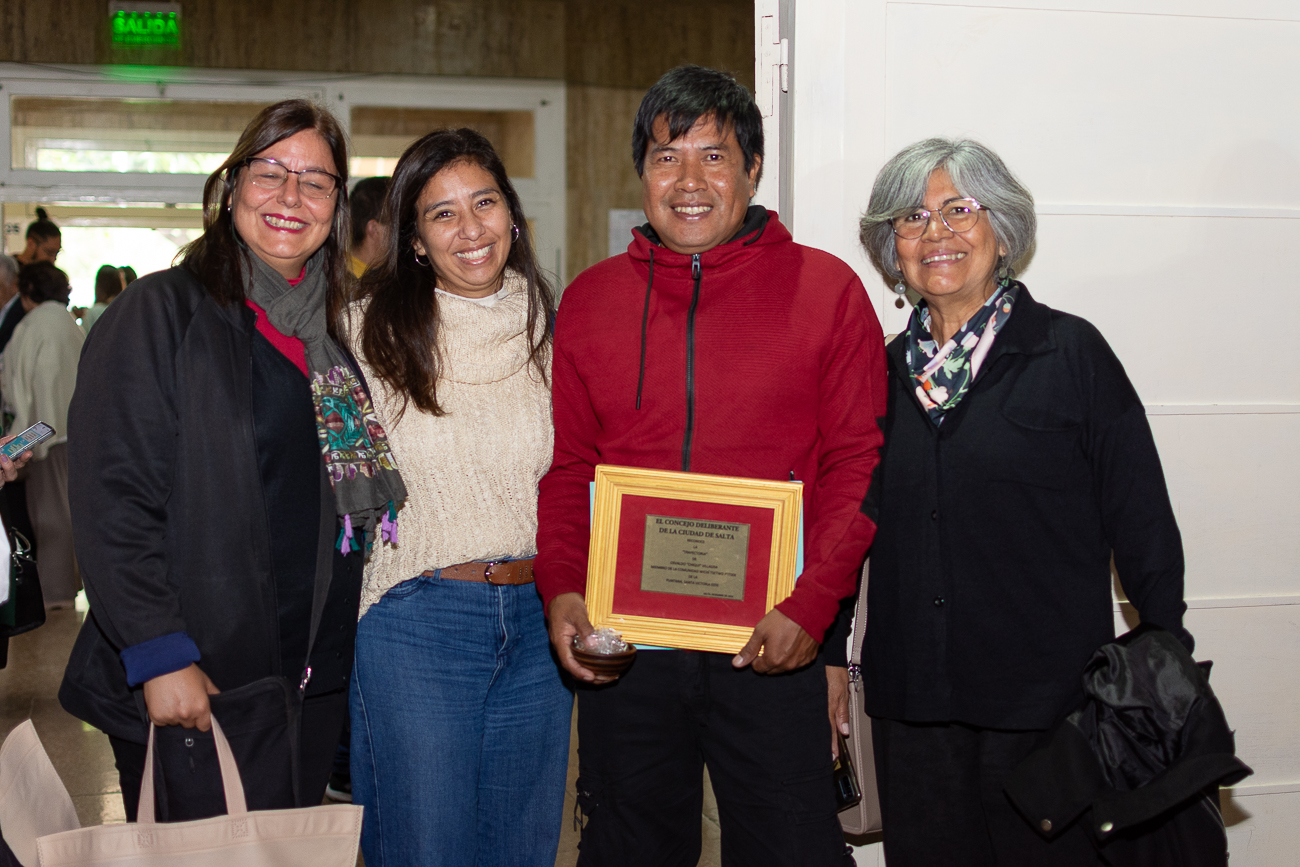 A continuación, Gustavo Farquharson y Malvina Gareca del Concejo Deliberante de Salta entregaron la Declaración de Interés Municipal, mediante Resolución N.º 119, destacando la relevancia del IV Congreso de EIB como espacio clave para el fortalecimiento de políticas públicas que garanticen los derechos educativos de los pueblos indígenas. Durante el acto también se reconoció a Osvaldo Villagra, miembro de la comunidad wichí Tsetwo P’itsek de La Puntana (Santa Victoria Este), por su labor como escritor y guía intercultural bilingüe, así como por su compromiso con la educación indígena. Mediante la Resolución N.º 779/24, se destacó además su vocación por el desarrollo comunitario y la preservación de los saberes ancestrales.