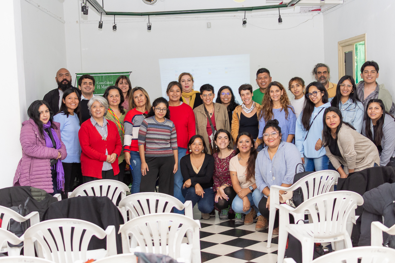 El segundo día del encuentro en el Centro Cultural Amèrica, se dió continuidad a la Muestra socioeducativa intercultural “Tejiendo saberes, raíces que hablan: cultura, arte, comunidad y territorio” y en simultáneo el Círculo de saberes interculturales sobre “Curriculum y pueblos indígenas«. Seguidamente se implementó el Círculo de saberes interculturales sobre “Prácticas pedagógicas” y el Círculo de saberes interculturales sobre “Educación superior”.