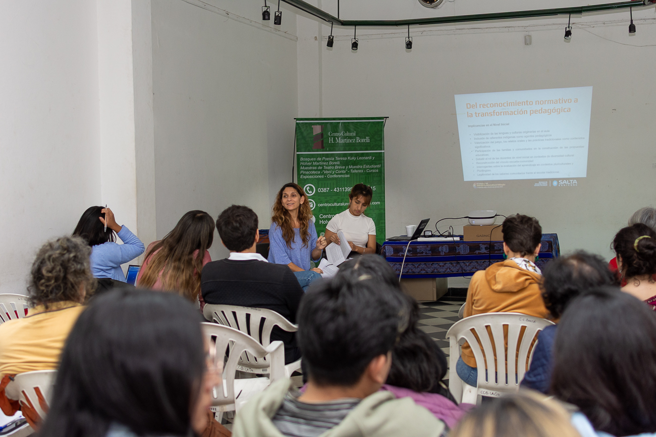 Participaron referentes de UNICEF Argentina presentando la línea de Alfabetización temprana, inicial y familiar con perspectiva intercultural, equipos técnicos de la Modalidad de Educación Intercultural Bilingüe y Educación Rural del Ministerio de Educación de Jujuy, autoridades de la Subsecretaría de Interculturalidad y Plurilingüismo del Ministerio de Educación de Chaco, docentes y especialistas del Centro de Investigaciones Sociales y Educativas del Norte argentino, del Instituto Investigaciones en Lengua y del Instituto de Investigaciones en Ciencias Sociales y Humanidades de la Facultad de Humanidades de la Universidad Nacional de Salta, de la Unidad de Investigación Política Educativa y Estudios Sociohistóricos de Infancias del NOA de la Universidad Nacional de Jujuy, de la Facultad de Ciencias Sociales de la Universidad Nacional de San Juan, del Centro Interdisciplinario de Estudios Avanzados de la Universidad Nacional de Tres de Febrero, de la Licenciatura de Educación Intercultural Bilingüe de la Universidad Nacional de Santiago del Estero, de la Cátedra Pueblos Originarios de la Universidad Nacional de Tucumán, investigadores e investigadoras, docentes y estudiantes de profesorados, equipos de gestión escolar de todos los niveles educativos, equipos de extensión e investigación universitaria; y principalmente comunidades, órganos y organizaciones de representación indígena.