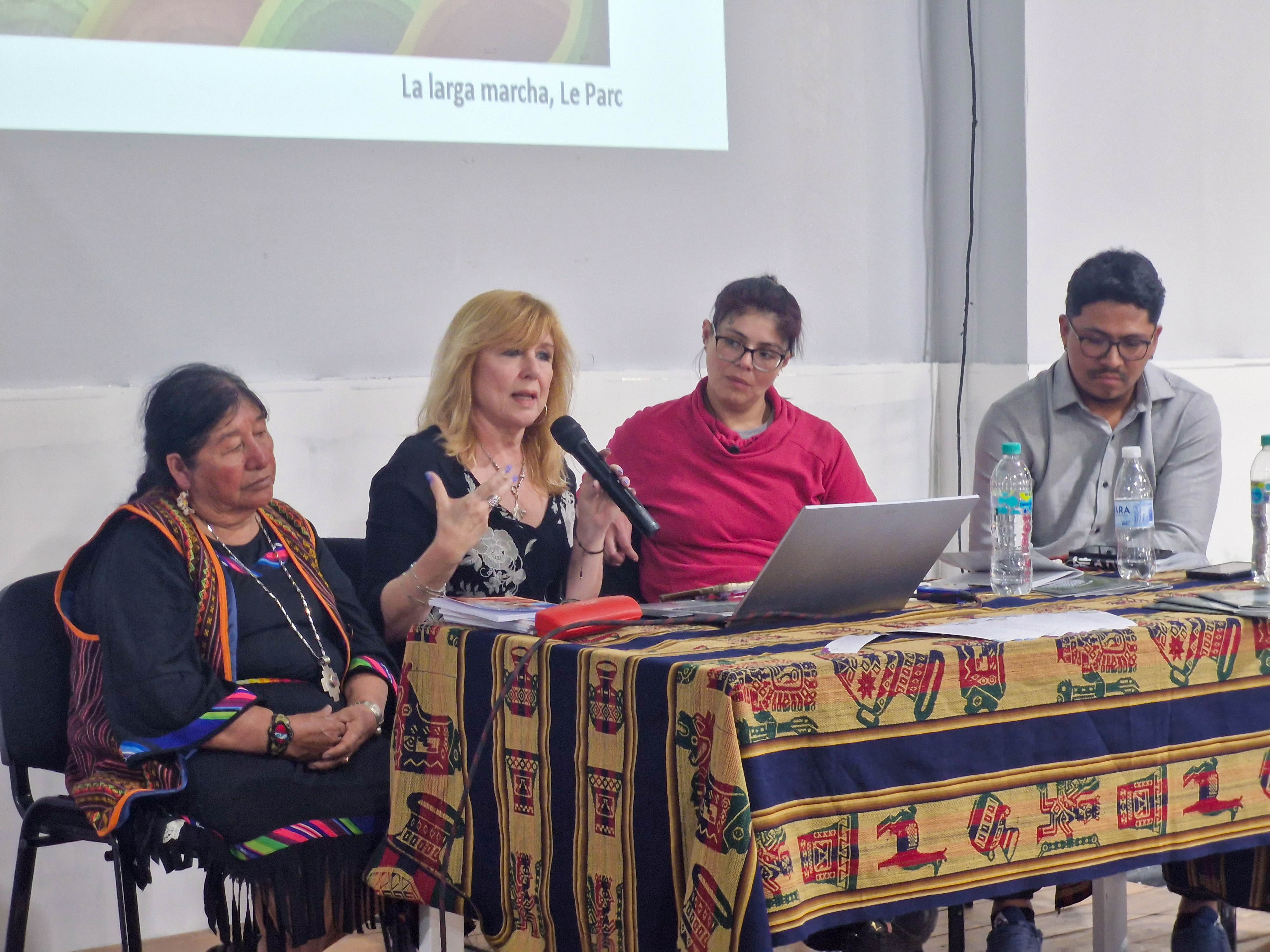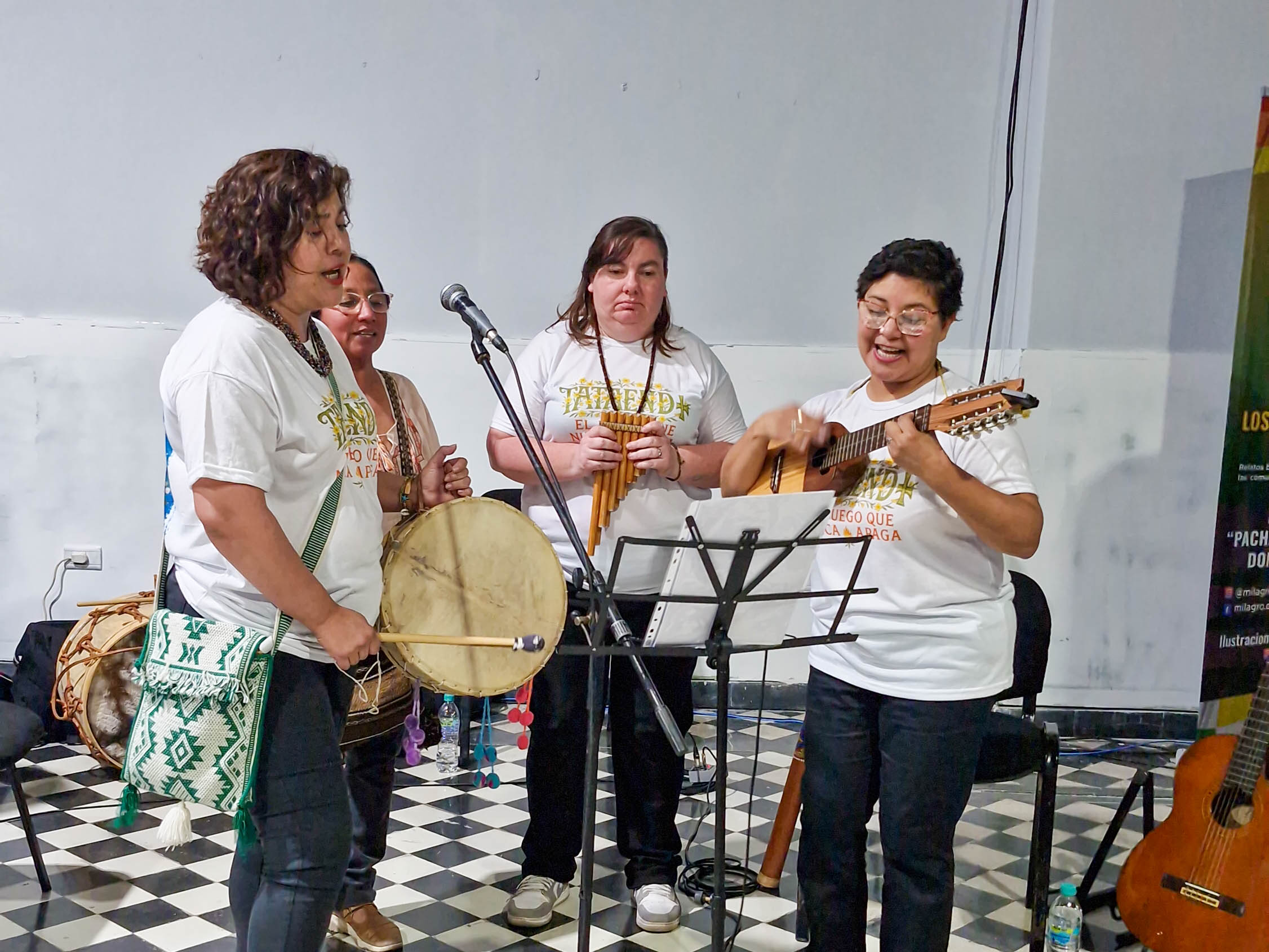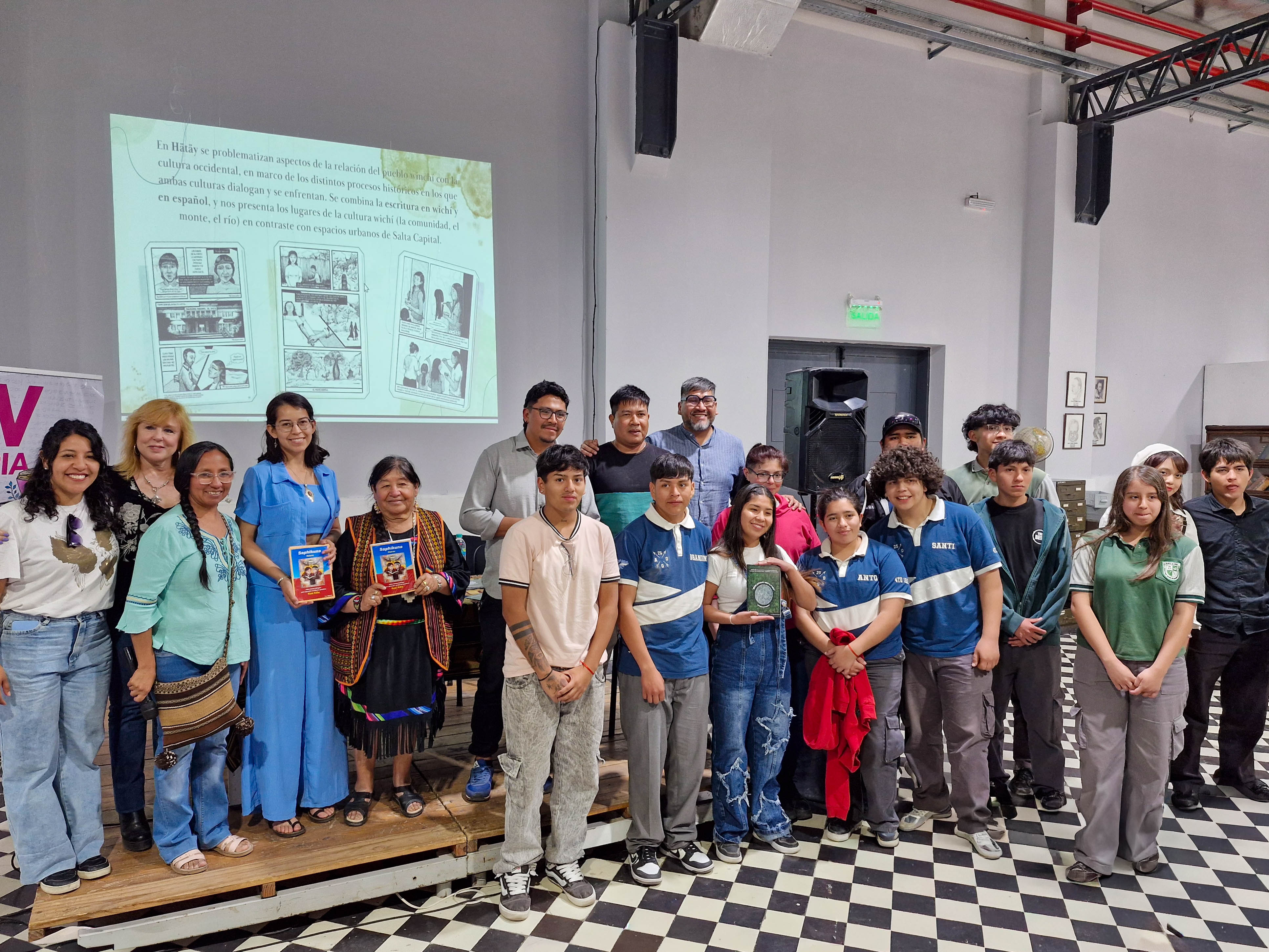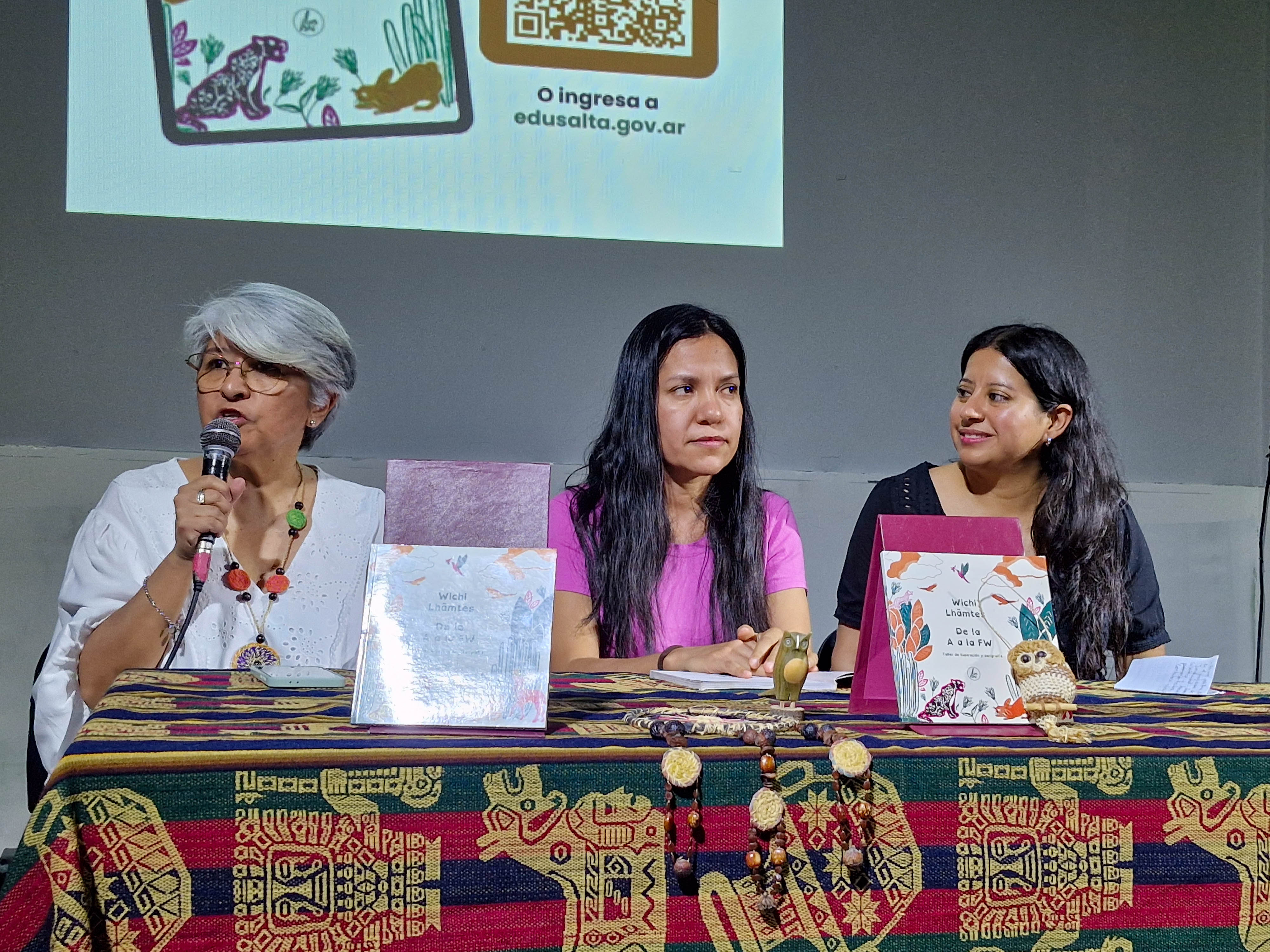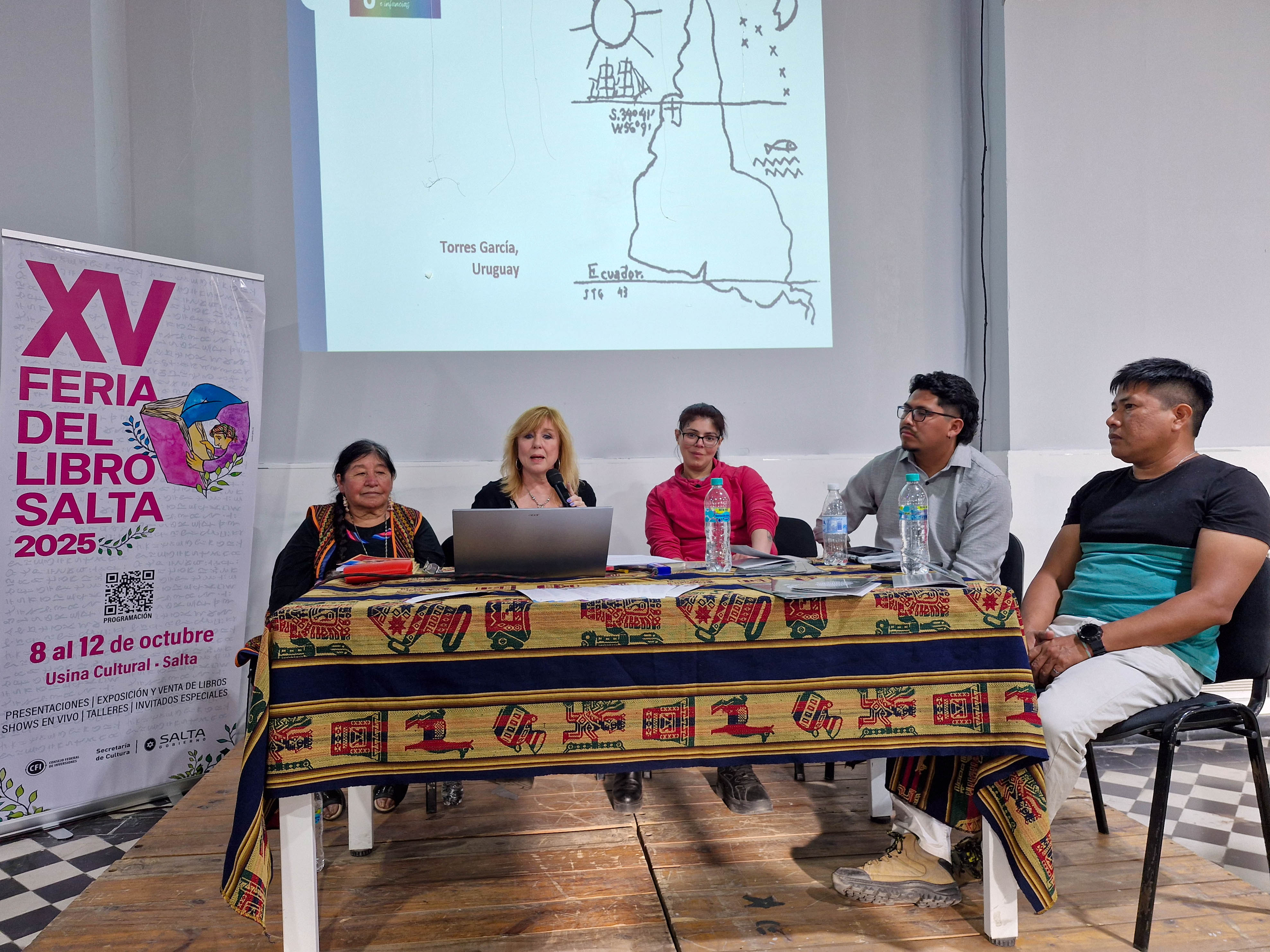 En la primera jornada participaron Concepción Catunta “Kusi Killa”, quien presentó su libro “Saphikuna” y entonó canciones en lengua quechua; María Alejandra Castiglioni, referente del Espacio Regional Interdisciplinar Interculturalidad e Infancias, con su obra “Interculturalidad e infancias”; y el grupo Kalay’i, integrado por Luis Colque, Osvaldo Villagra y Pamela Rivera, compartió su experiencia en la producción de historietas en lengua wichí y presentó “Wichi letamsek ihihit’a p’ante”.