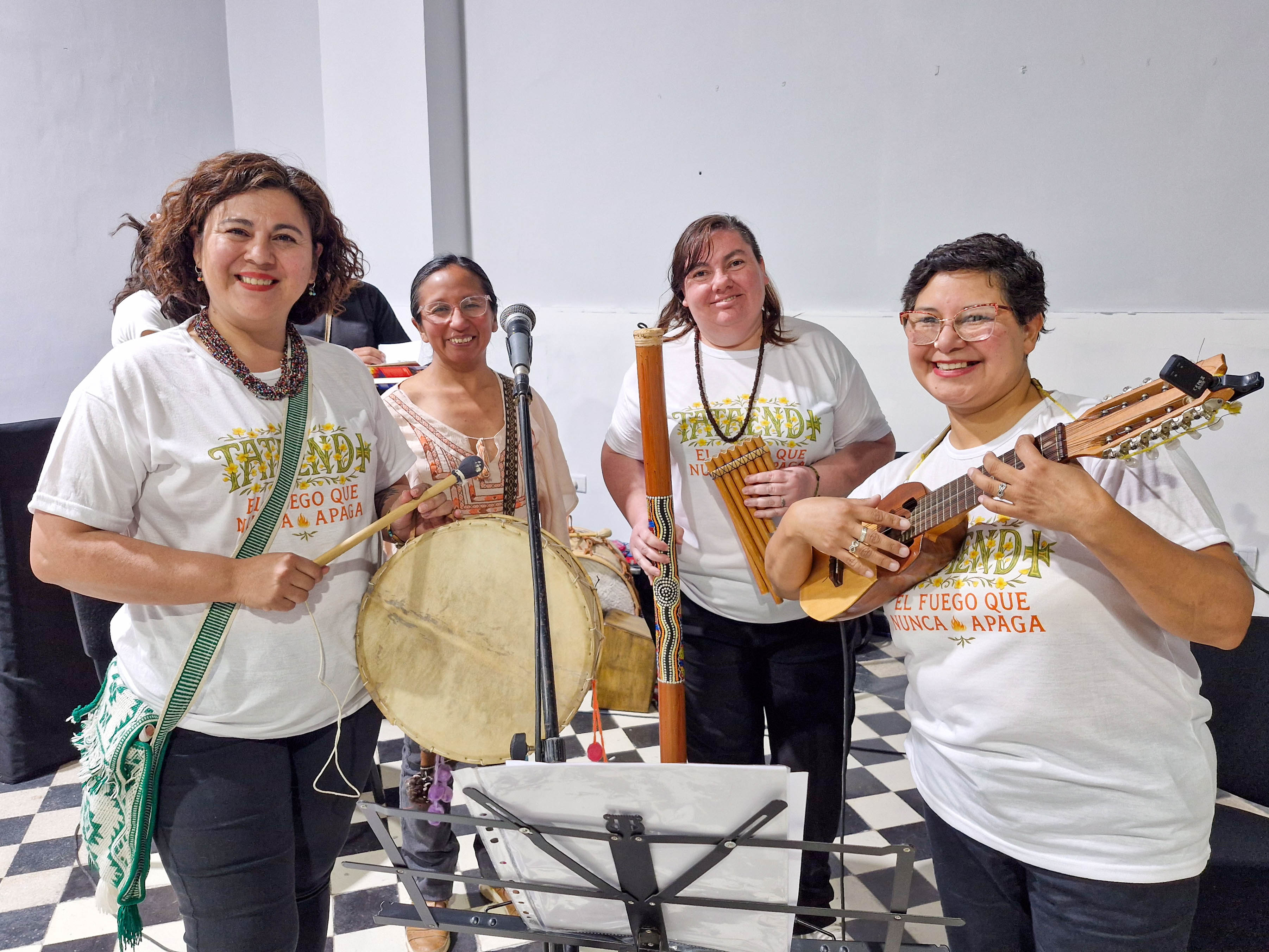 La segunda jornada contó con la presencia de Milagro “Pachacutec” Dominguez, autor de “Los cuentos kollas de Santusa Iskay”; Festo Chauque, con el libro “Ñawichana qelqana quechua”; y María Soledad Morales, acompañada por Graciela Noé Romero, con Tataend+ El fuego que nunca se apaga. A continuación, el grupo Tataend+, integrado por Alejandra Salgado, María Soledad Morales y Sandra Díaz, brindó un espacio musical con el huayno “El Karallantay” junto a Julieta Barboza, y cerraron la jornada con música del Arete guazú –fiesta grande guaraní, que con el ritmo del bombo se bailó el pin pin.