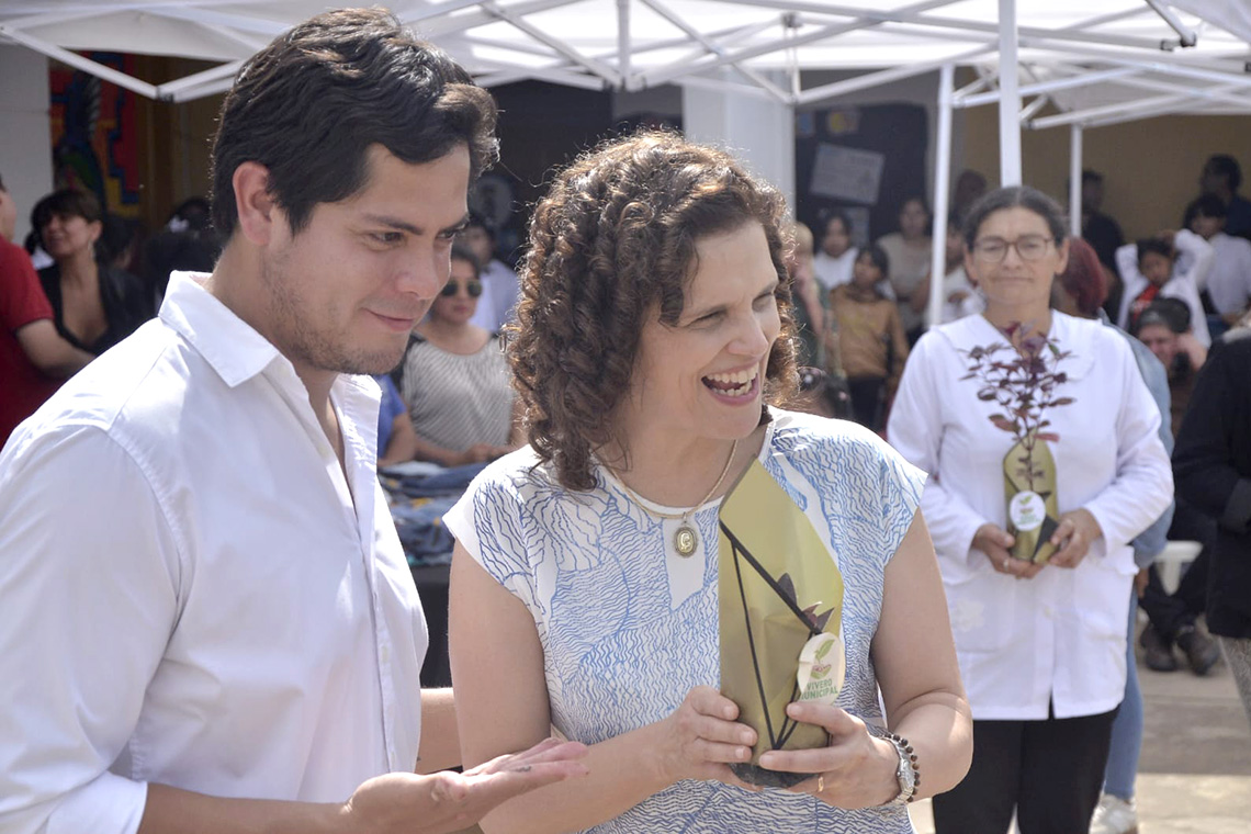 Posteriormente se entregaron mochilas y guardapolvos a los estudiantes que se elaboran en la localidad y se plantó un árbol de Tártago.
