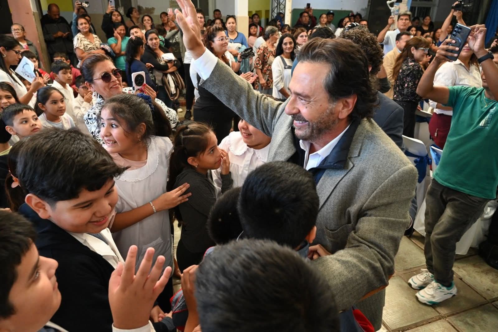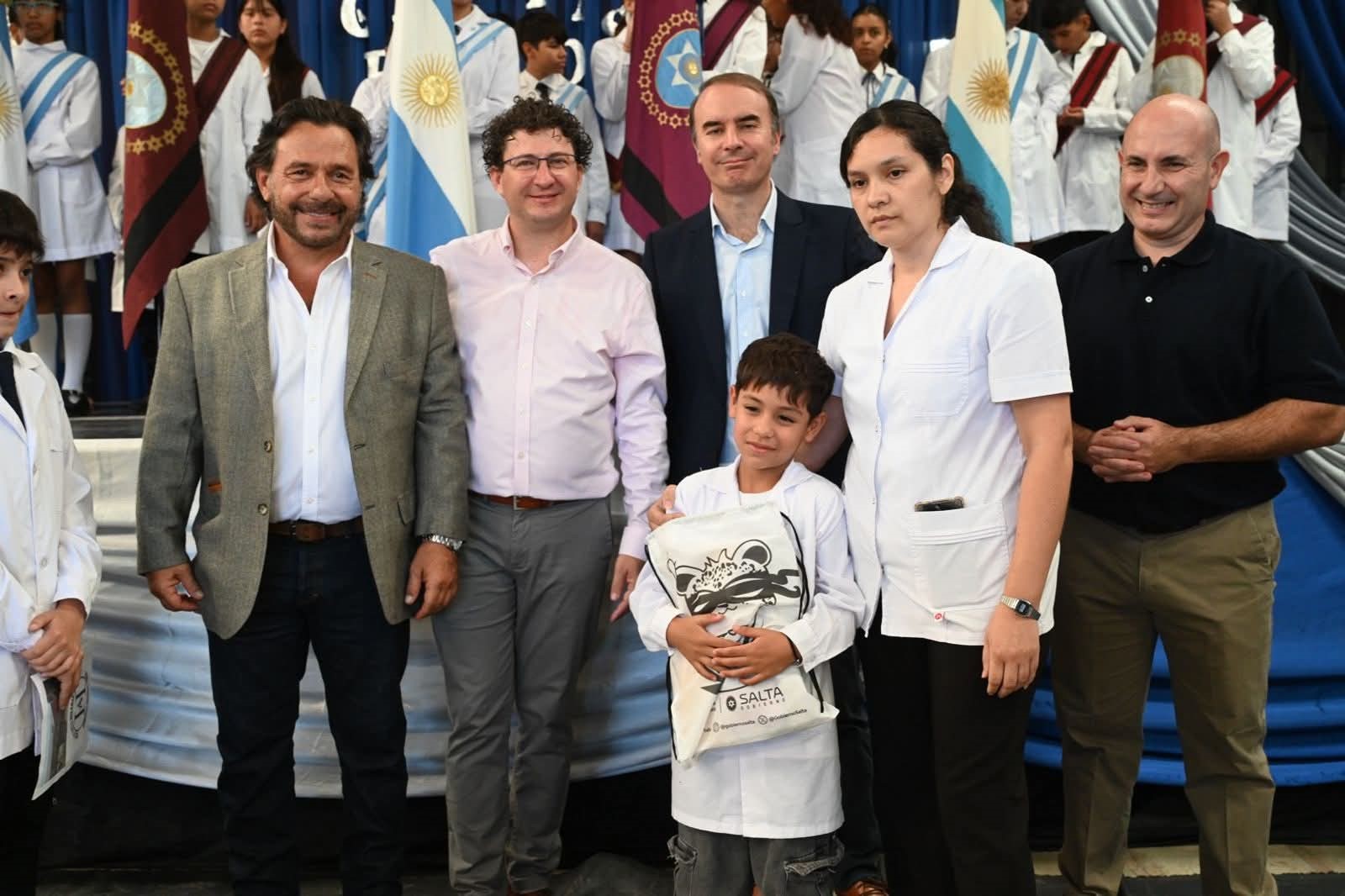 El acto se realizó en la escuela N° 4.473 “Hilario Ascasubi” de General Güemes, donde el mandatario provincial puso en marcha un operativo que alcanzará a todos los departamentos, con la entrega de más de 220.000 kits escolares y 180.000 manuales.