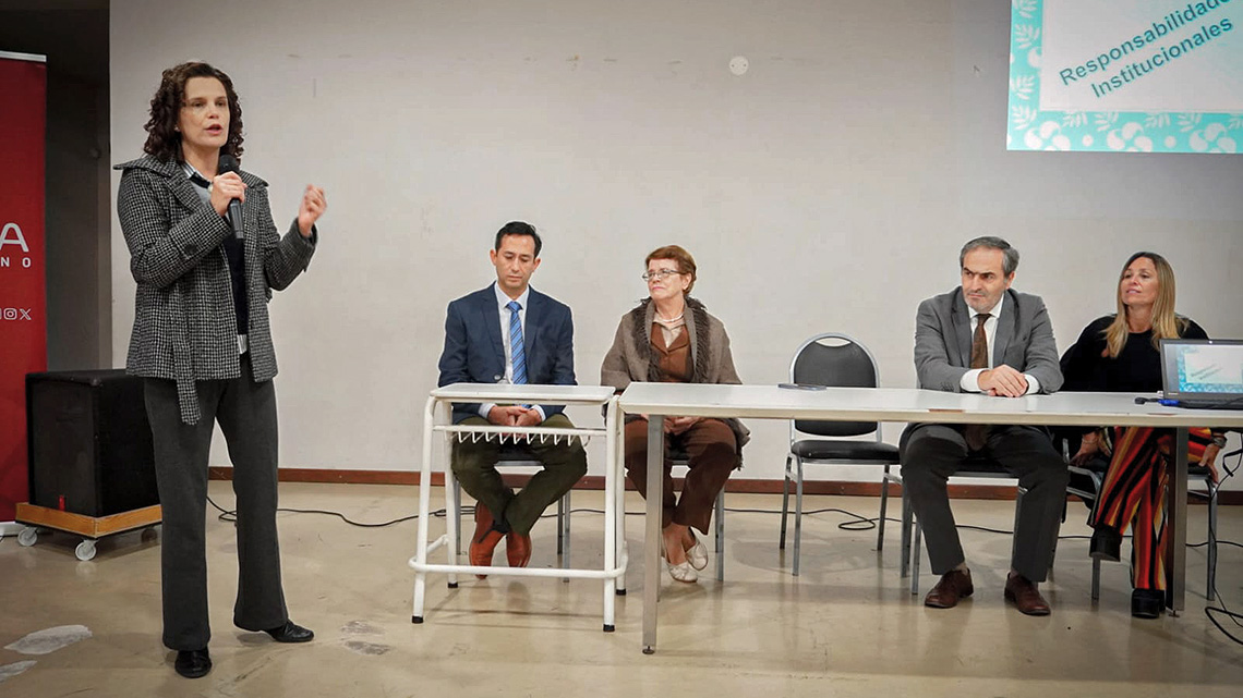 Durante el espacio de formación, a cargo de Matilde Alonso del Servicio de Atención a la Víctima del Ministerio Público Fiscal, se abordaron los principales marcos normativos vinculados a la convivencia escolar y al abordaje de la conflictividad social en las instituciones educativas.