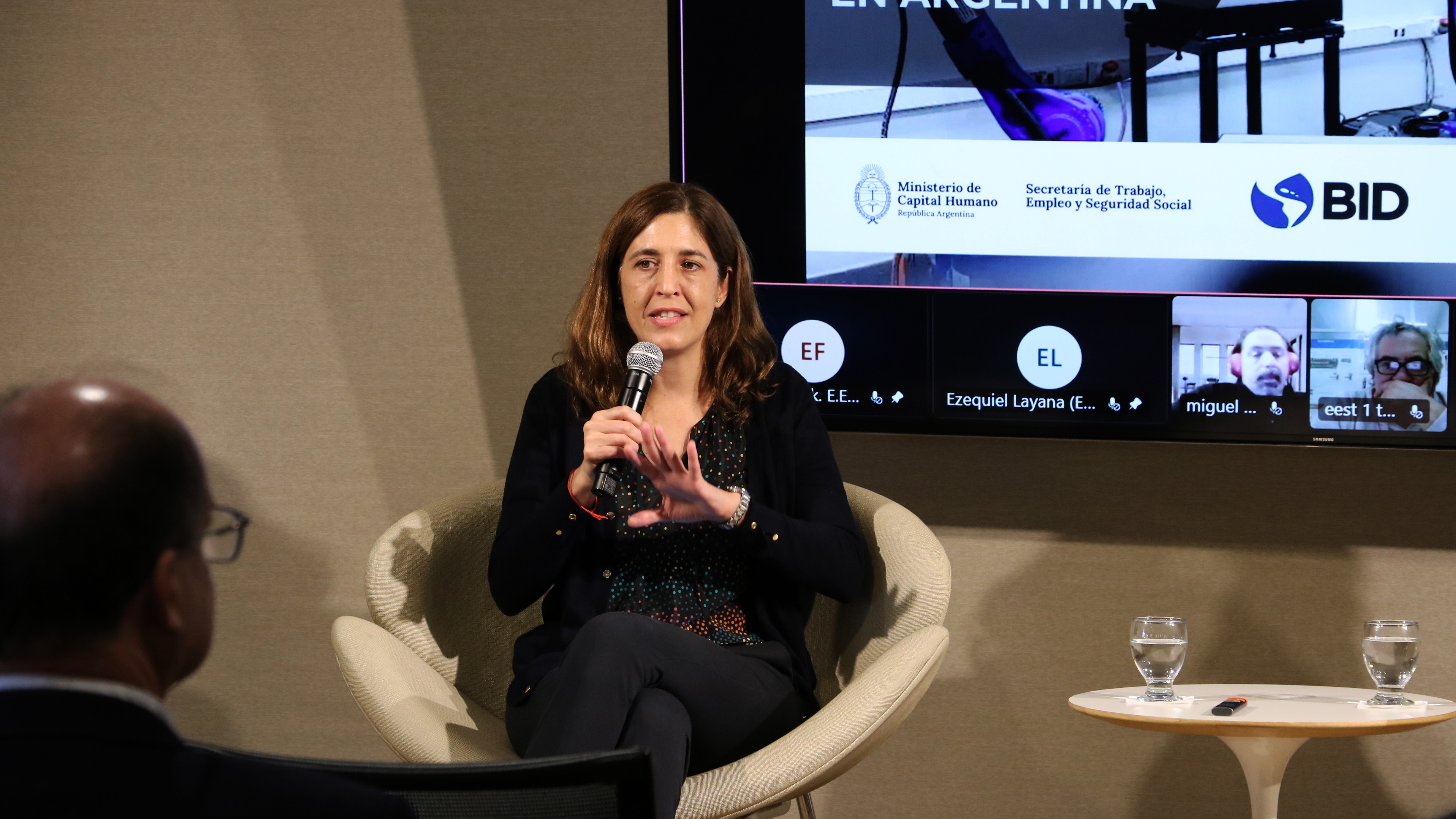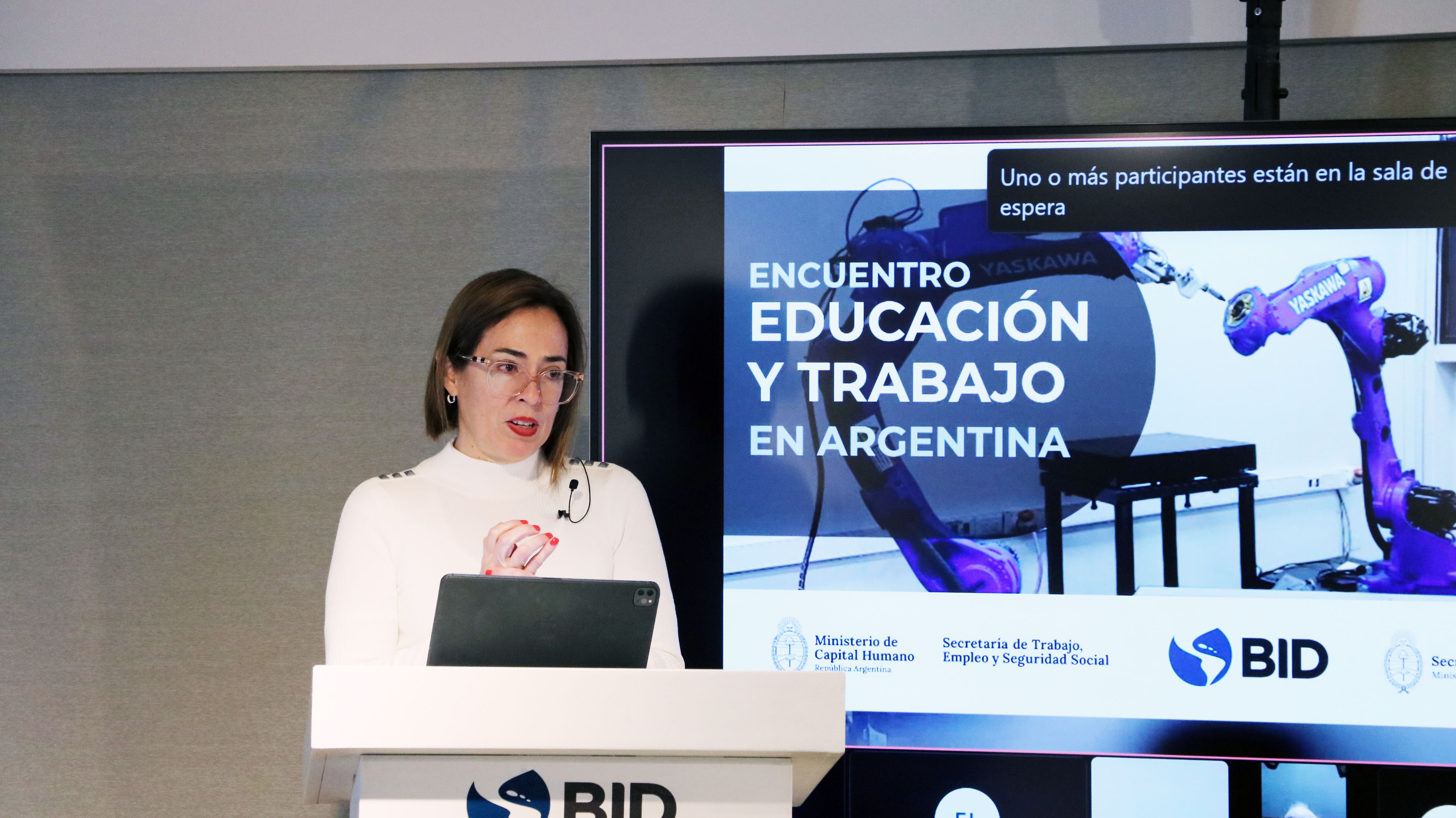 La apertura del encuentro estuvo a cargo de la Representante del BID en Argentina, Viviana Alva Hart, quien dio la bienvenida a los participantes y destacó la importancia de la articulación entre educación, trabajo y sector productivo como motor para el desarrollo inclusivo y sostenible del país.