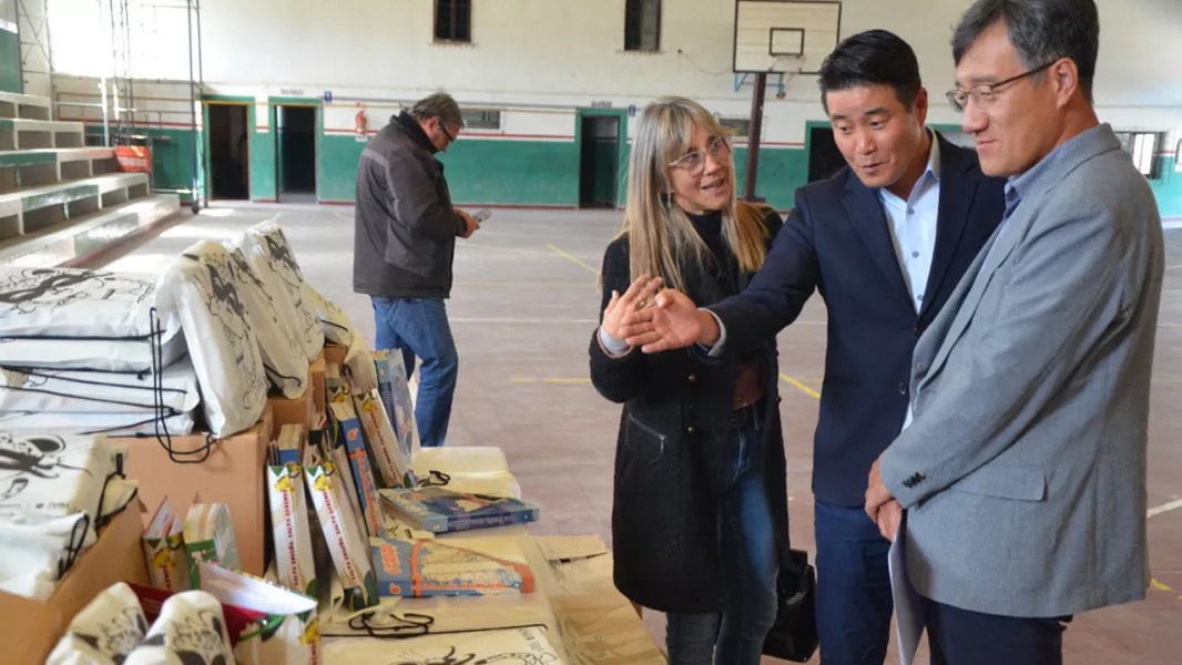 En la entrega estuvieron el ministro de Producción y Ambiente, Martín de los Ríos y la secretaria de Planeamiento Educativo y Desarrollo Profesional Docente, Analía Guardo. El intendente Alberto Carral recibió a las autoridades en el Polideportivo Municipal.