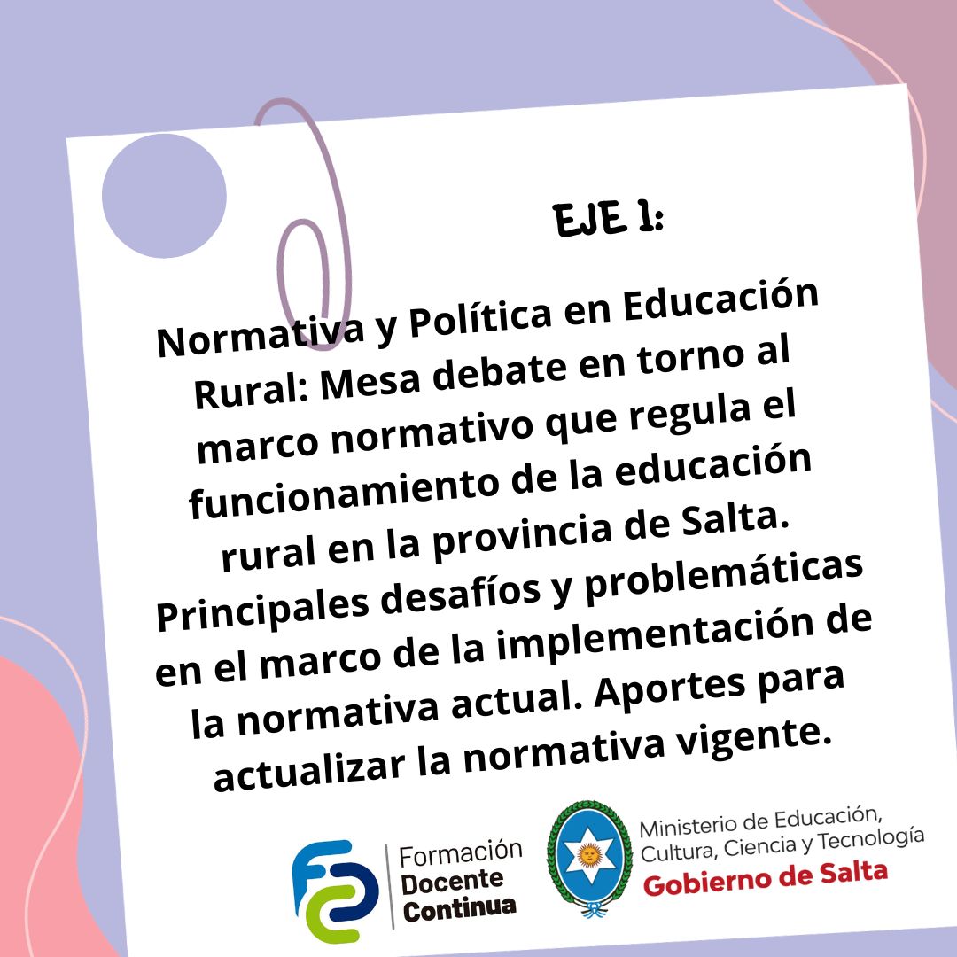 De esta manera, se propone generar una instancia de encuentro presencial que permita conocer y socializar las principales implicancias y características de la educación rural en la provincia de Salta y habilitar un espacio de diálogo y debate en el abordaje integral de la educación rural- en los distintos niveles y modelos pedagógicos- de la provincia de Salta, a través de cada uno de los ejes de trabajo presentados.