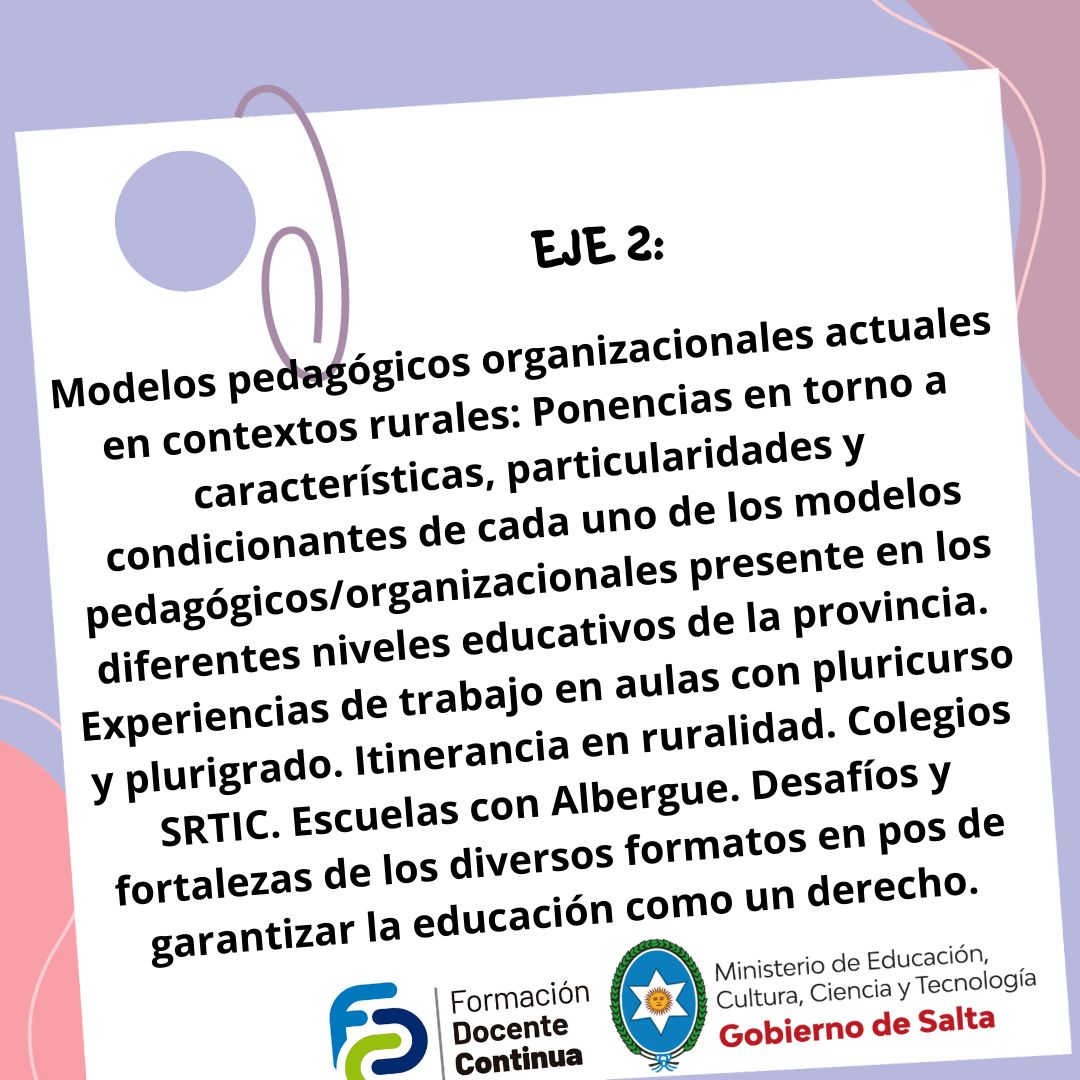 Eje 2: Modelos pedagógicos organizacionales actuales en contextos rurales.