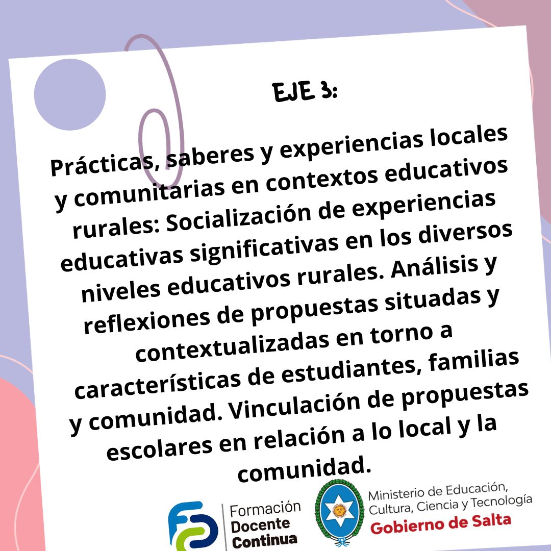 Eje 3: Prácticas, saberes y experiencias locales y comunitarias en contextos educativos rurales.