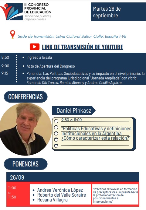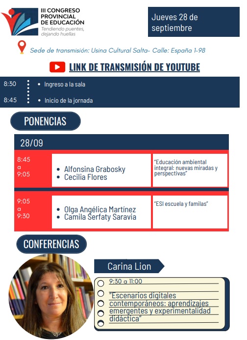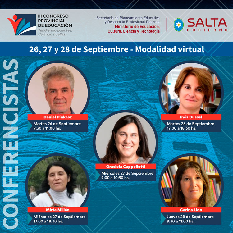 Modalidad del Ciclo de Ateneos: Virtual. Carga horaria: 12 horas cátedra Inicio del Ciclo de Ateneos: Sábado 9 de septiembre a horas 9:30 a.m. Destinatarios: Directivos y Docentes del Nivel Secundario del ámbito rural de la provincia.