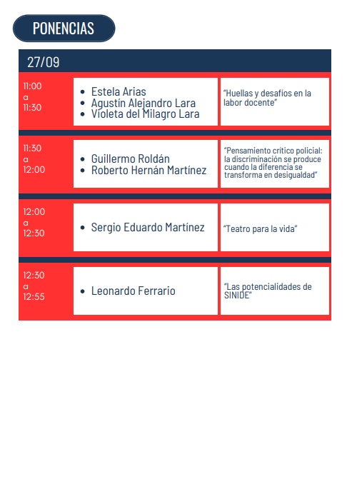 2º Ateneo: Sábado 23 de septiembre de 9:30 a 11:45 a.m. Convivencia Escolar: Construir la convivencia desde la perspectiva de cuidado y con enfoque de derechos. El rol de los adultos: autoridad pedagógica y corresponsabilidad. Los acuerdos escolares de convivencia (Ley N°26892 y Res. Ministerial N°012/23). En conflicto: Normas y Sanciones. Participación estudiantil: Órganos de representación y participación.