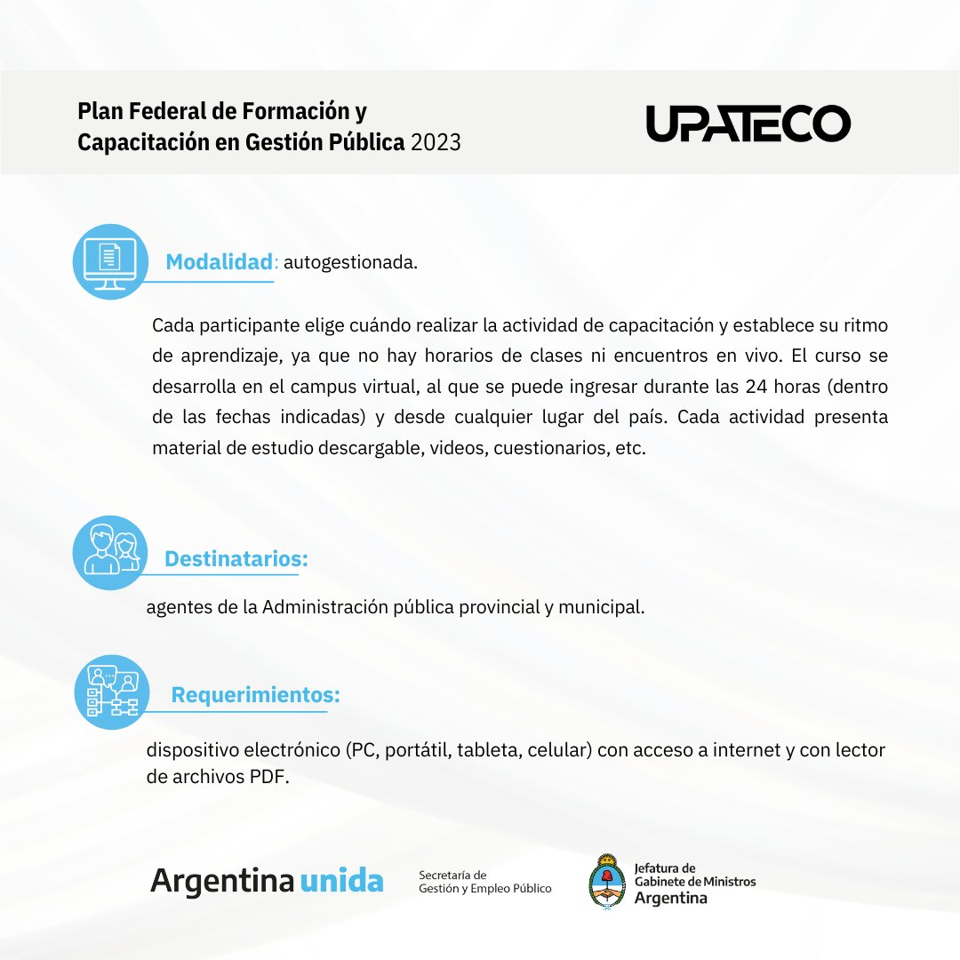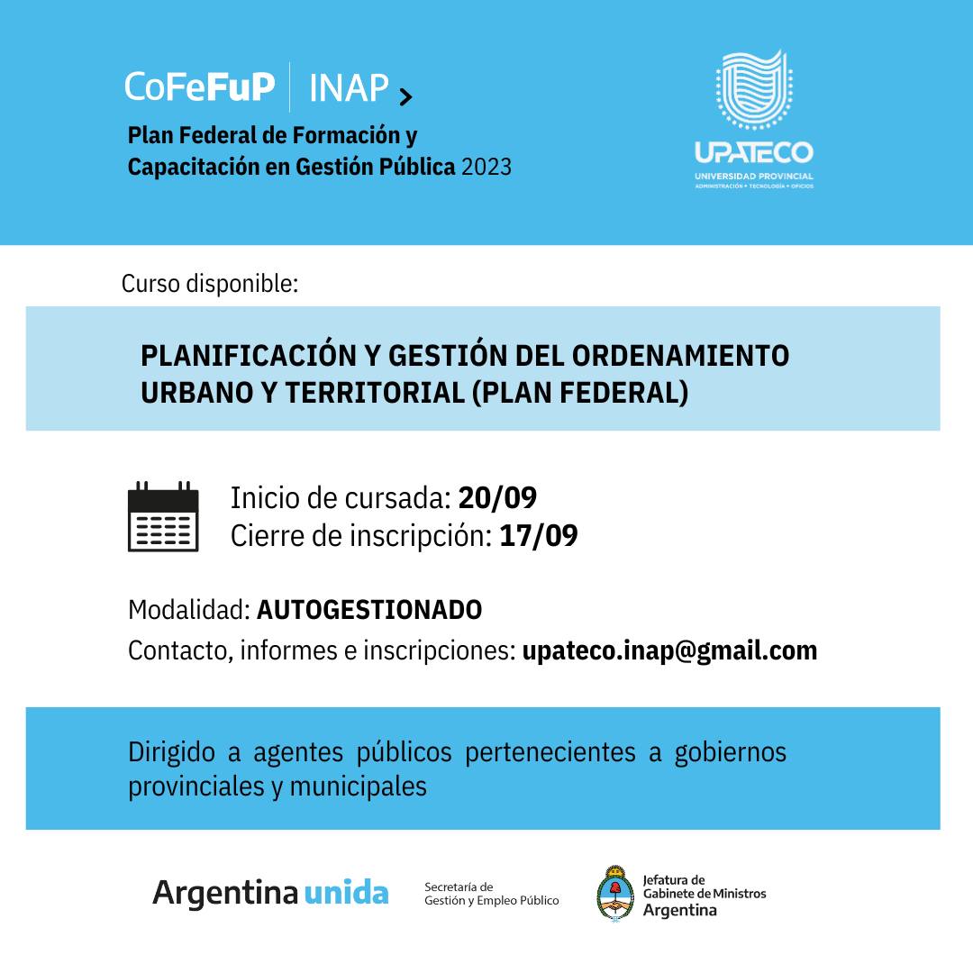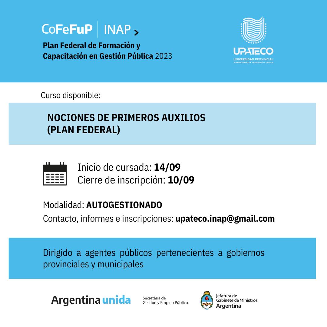 Consultas, información e inscripciones: upateco.inap@gmail.com