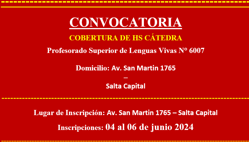 CONVOCATORIA PARA LA COBERTURA DE HS CÁTEDRA IES 6007 DE SALTA CAPITAL