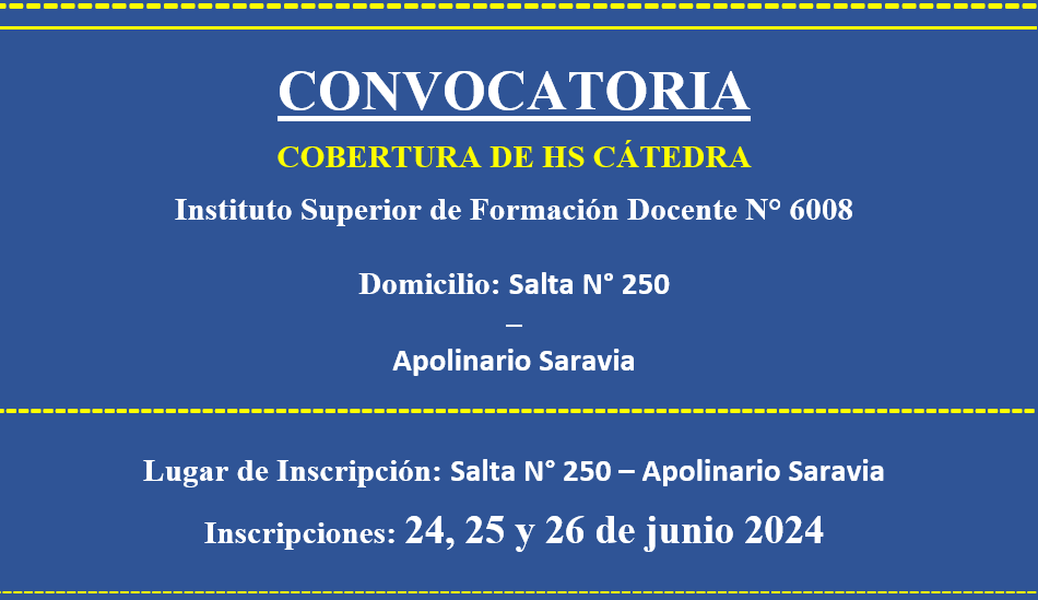 CONVOCATORIA PARA LA COBERTURA DE HS CÁTEDRA IES 6024 DE ROSARIO DE LA FRONTERA