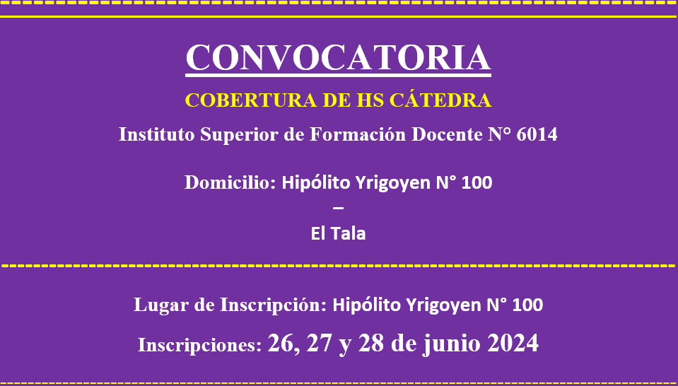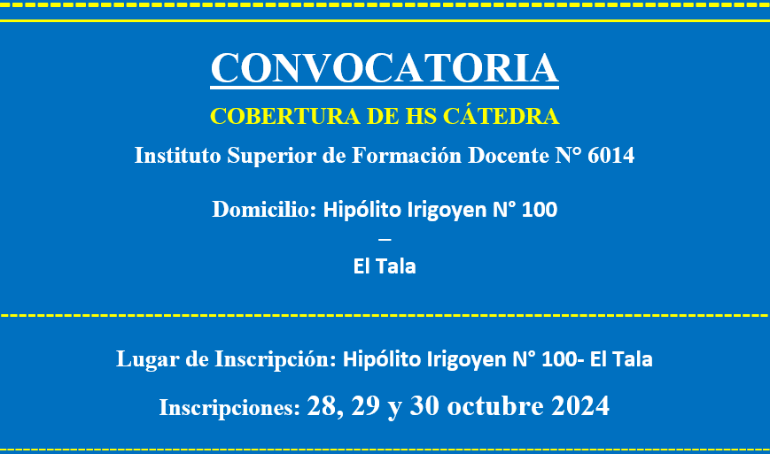 CONVOCATORIA PARA LA COBERTURA DE HS CÁTEDRA IES 6014 DE EL TALA