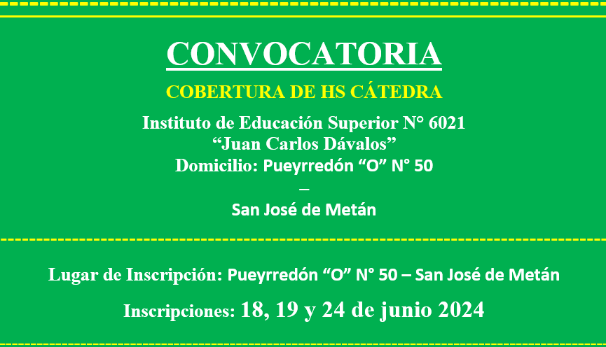 CONVOCATORIA PARA LA COBERTURA DE HS CÁTEDRA IES 6021 DE SAN JOSÉ DE METÁN