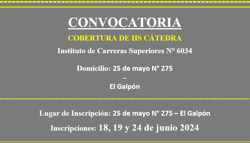 CONVOCATORIA PARA LA COBERTURA DE HS CÁTEDRA IES 6034 DE EL GALPÓN