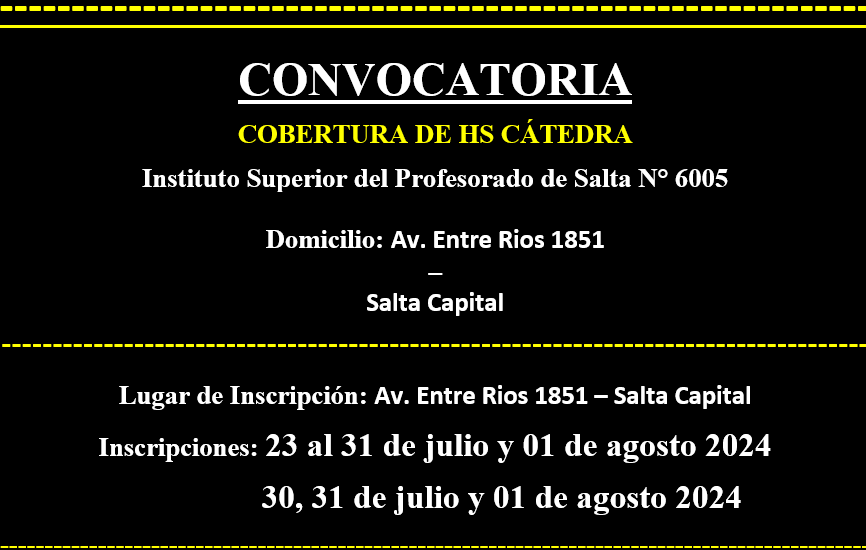 CONVOCATORIA PARA LA COBERTURA DE HS CÁTEDRA IES 6005 DE SALTA CAPITAL
