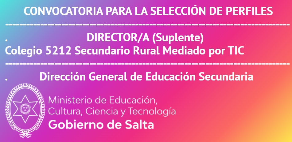 Convocatoria para la selección de perfil de Director/a del Colegio N° 5212 Secundario Rural Mediado por TIC
