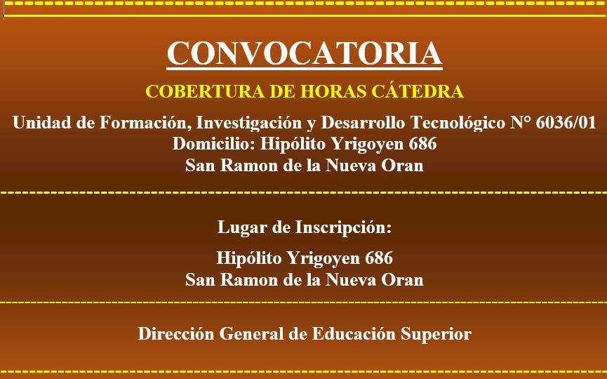 CONVOCATORIA PARA LA COBERTURA DE HS CÁTEDRA U.F.I.De.T. 6036/01 DE S.R.N. ORAN