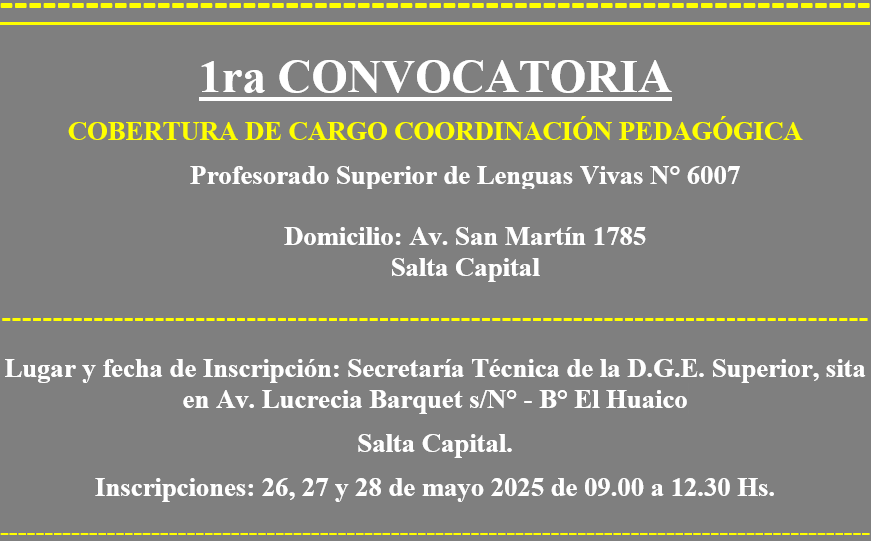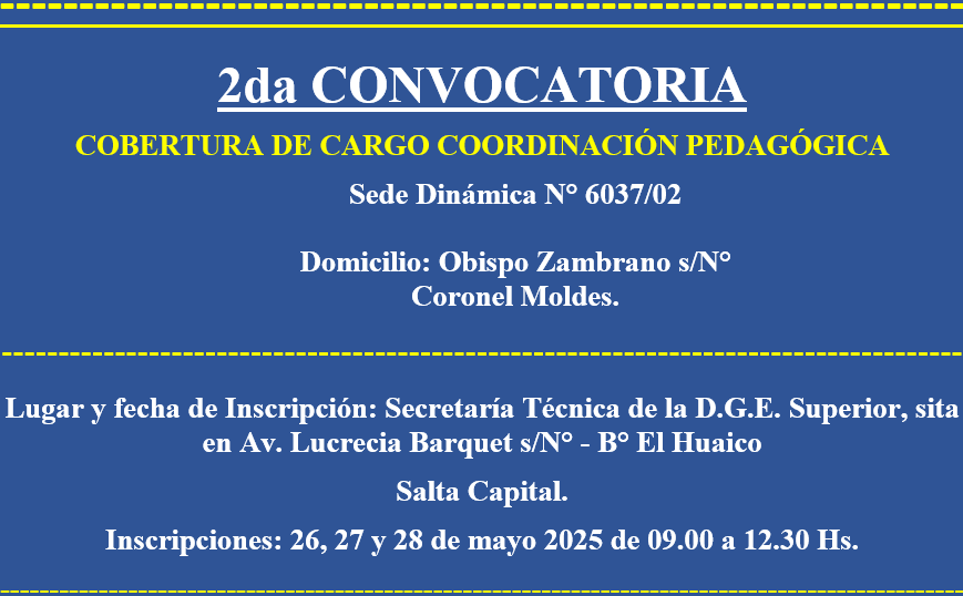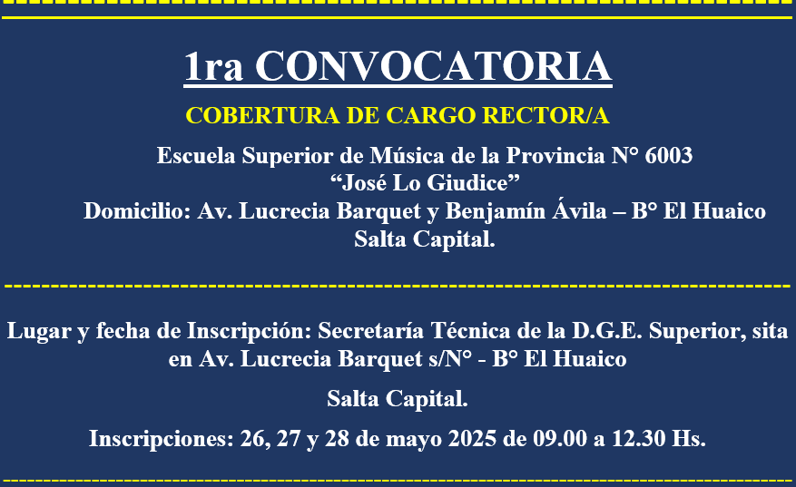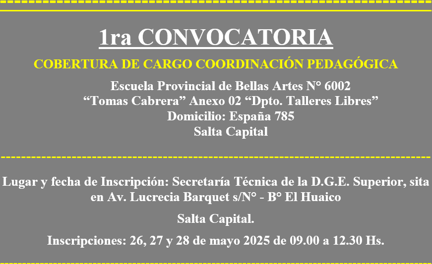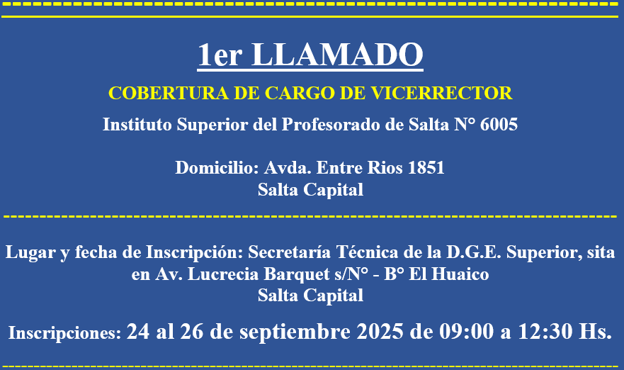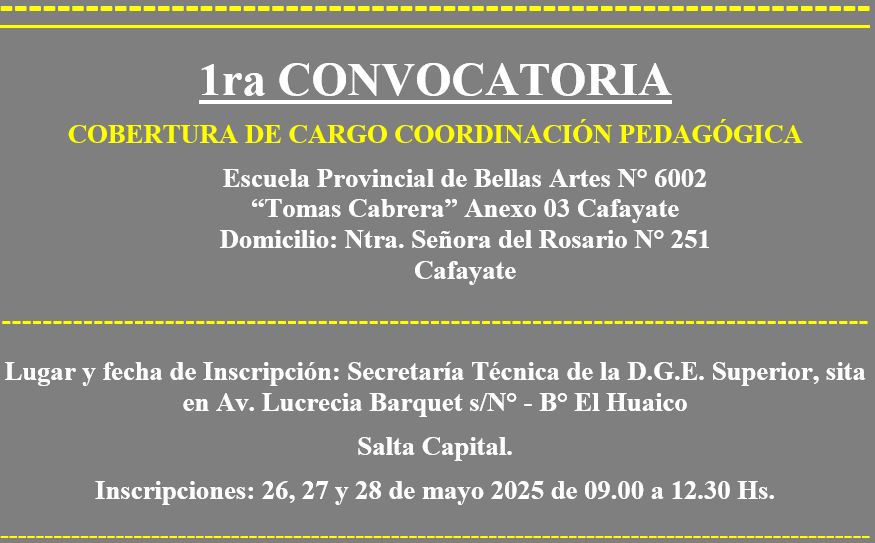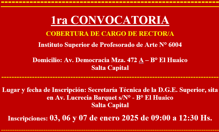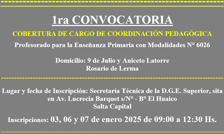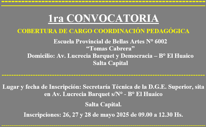 Convocatorias en el ámbito del Ministerio de Educación, Cultura, Ciencia y Tecnología de Salta.