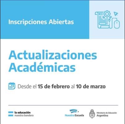 Las Actualizaciones Académicas son postítulos docentes orientados a fortalecer la formación vinculada con la renovación de las prácticas de enseñanza y evaluación. Se proponen brindar una actualización sistemática que permita profundizar la formación disciplinar, interdisciplinar y didáctica en concordancia con las orientaciones y definiciones establecidas por las normativas del CFE y de las jurisdicciones. Tienen una cargaSigue leyendo «INSCRIPCIONES ABIERTAS POSTITULOS NACIONALES»