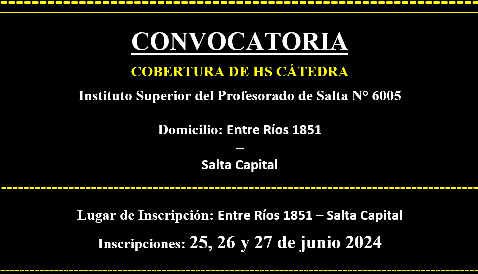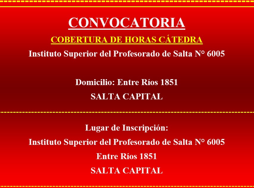 CONVOCATORIA PARA LA COBERTURA DE HS CÁTEDRA IES 6005 DE SALTA CAPITAL