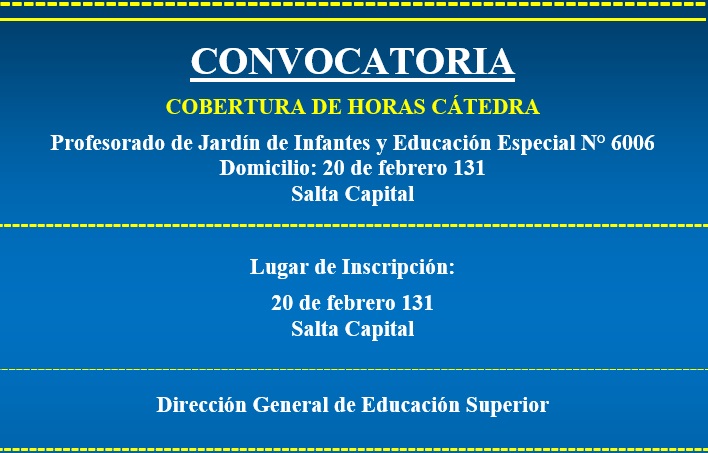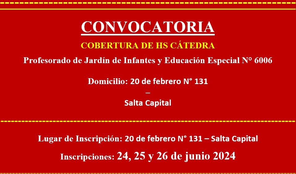 CONVOCATORIA PARA LA COBERTURA DE HS CÁTEDRA IES 6006 DE SALTA CAPITAL