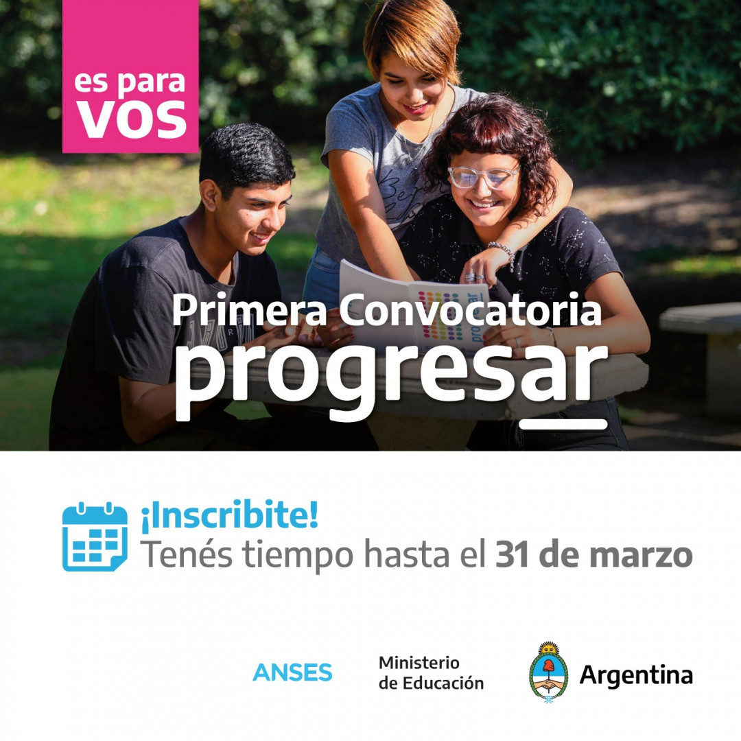 Hasta el 16 de abril se extiende la primera inscripción 2023 para PROGRESAR en sus líneas de beca: Progresar Obligatorio (incluye Línea 16 y 17), Progresar Superior y Progresar Enfermería. La inscripción a Progresar Trabajo estará disponible hasta noviembre inclusive. El Programa contempla poblaciones priorizadas, para las cuales varían los requisitos de edad. De Ingresos: LosSigue leyendo «BECA PROGRESAR 2023 – SE EXTIENDE LA FECHA DE INSCRIPCIÓN»