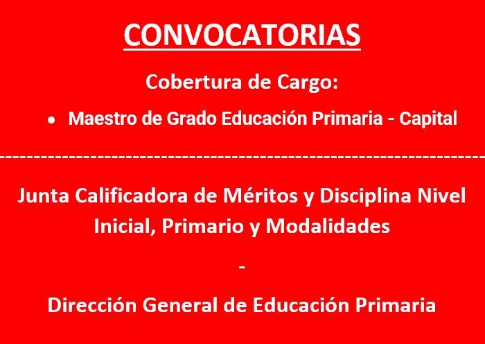 CONVOCATORIA COBERTURA DE CARGO MAESTRO DE GRADO PRIMARIA– DPTO. CAPITAL