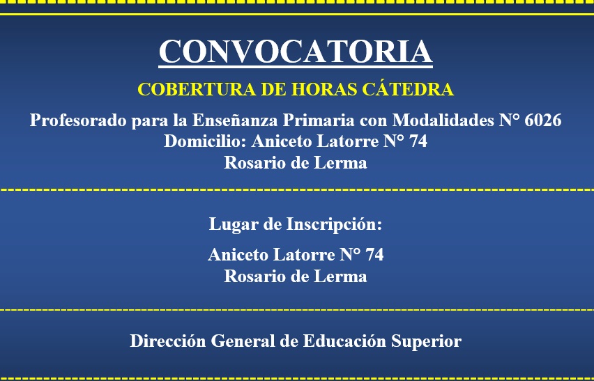 CONVOCATORIA PARA LA COBERTURA DE HS CÁTEDRA IES 6026 DE ROSARIO DE LERMA