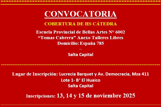 CONVOCATORIA PARA LA COBERTURA DE HS CÁTEDRA IES 6002 DE SALTA CAPITAL