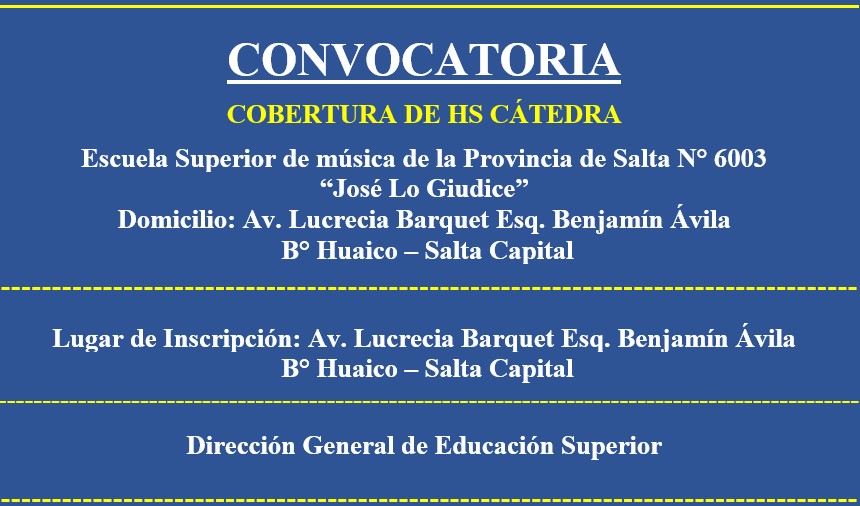 CONVOCATORIA PARA LA COBERTURA DE HS CÁTEDRA IES 6003 DE SALTA CAPITAL