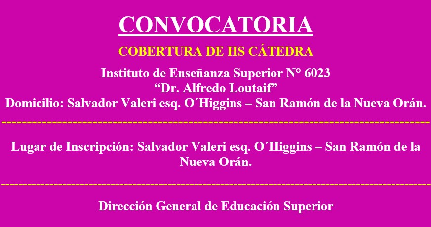 CONVOCATORIA PARA LA COBERTURA DE HS CÁTEDRA IES 6023 SAN RAMÓN DE LA NUEVA ORÁN