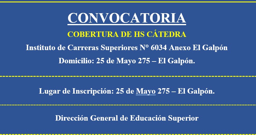 CONVOCATORIA PARA LA COBERTURA DE HS CÁTEDRA IES 6034 ANEXO EL GALPÓN