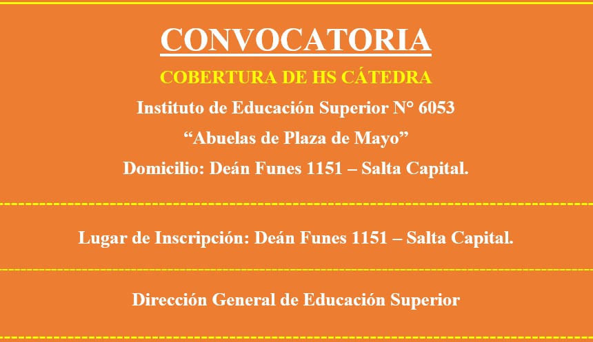 CONVOCATORIA PARA LA COBERTURA DE HS CÁTEDRA IES 6053 SALTA CAPITAL
