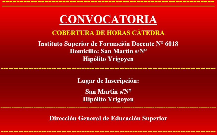 CONVOCATORIA PARA LA COBERTURA DE HS CÁTEDRA IES N° 6018 DE HIPOLITO YRIGOYEN