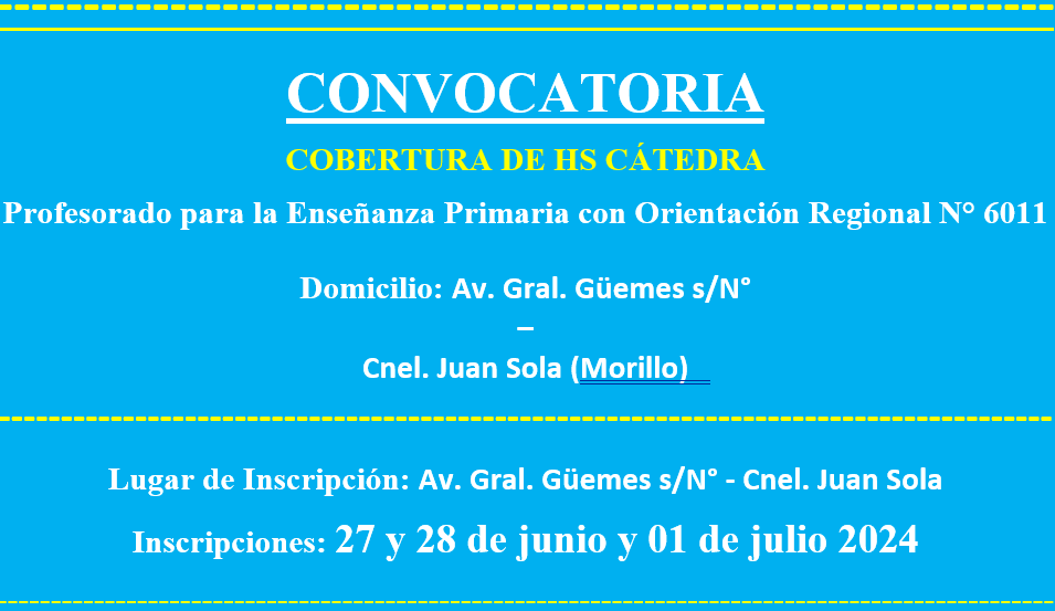 CONVOCATORIA PARA LA COBERTURA DE HS CÁTEDRA IES 6011 DE CNEL. JUAN SOLA (MORILLO)